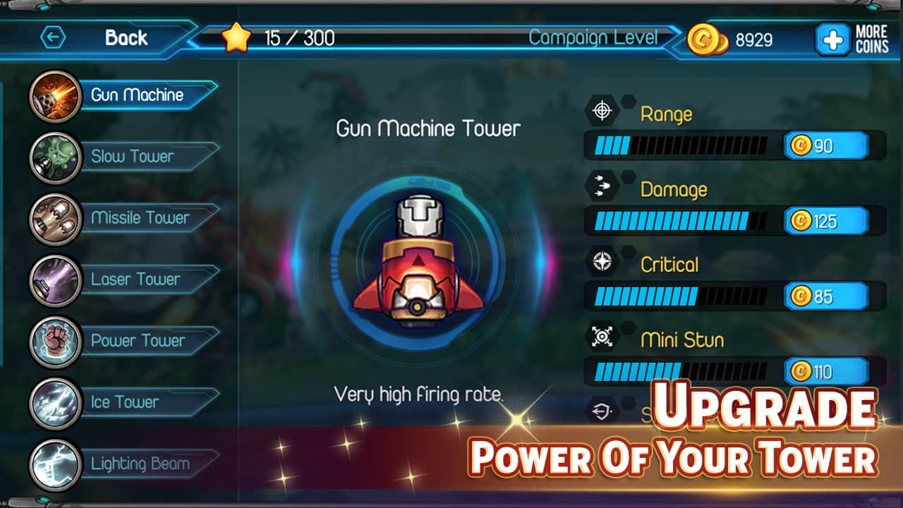 Kule Savunması: Galaksi Efsanesi – üstten görünüşe sahip bir Android strateji oyunu, burada uzaylı ırklarla savaşacaksınız. Galaksinin çeşitli gezegenlerinde seyahat edin ve üssünüzü ele geçirmek isteyen sayısız düşmanla savaşın. Savunma kulelerini her yere yerleştirerek sert ve epik savaşlara hazırlanın. Farklı türde kuleleri birleştirerek yaklaşan düşmanları yok edin, onların üssünüze yaklaşmasına izin vermeyin. Sadece düşmanlara değil, aynı zamanda sayısız hava araçlarına ve diğer düşman teknolojilerine de karşı koyun. 100 haritada seyahat edin, 2 oyun modunu deneyin ve 7 tür savunma kulesini uygulamada deneyimleyin.