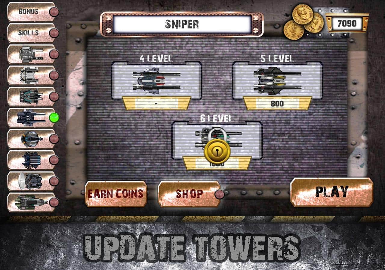 Kule Savunması: Tank SAVAŞI - 'Kule savunması' türünde tank savaşları. Oyun, iyi grafikler, detaylı bir oyun deneyimi ve büyük bir seviye çeşitliliği ile öne çıkıyor, ayrıca dengeli güç dağılımı oyunu gerçekten ilginç hale getiriyor. Oyunda çeşitli birimlerin, kulelerin ve sürekli sizi yok etmeye çalışacak çeşitli düşmanların oldukça fazla sayıda bulunuyor. Tanklar, uçaklar, helikopterler, gemiler ve robotlar bu oyunu oyuncular için uzun süre ilginç kılacak. Tekniklerinizi yavaş yavaş geliştirerek kulelerin hasarını ve diğer özelliklerini artırıyorsunuz.