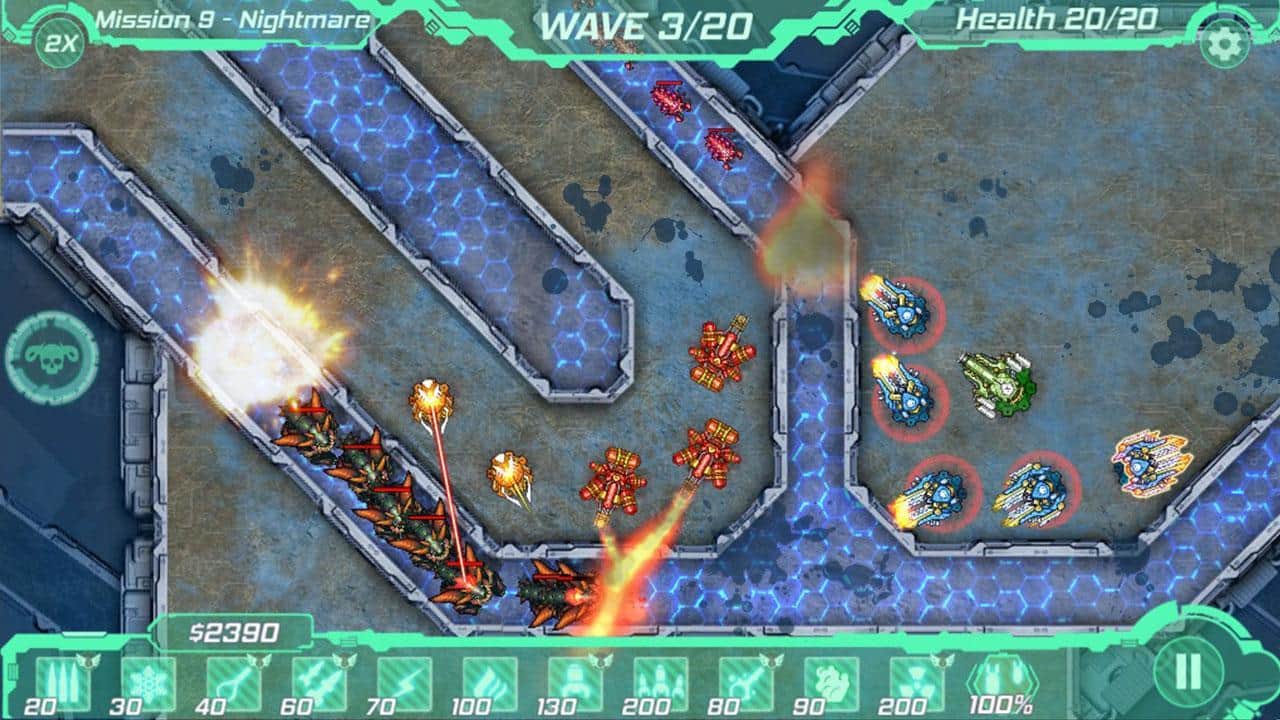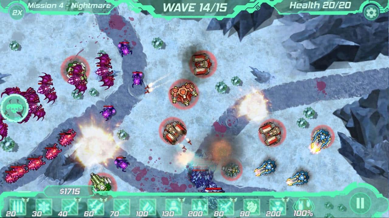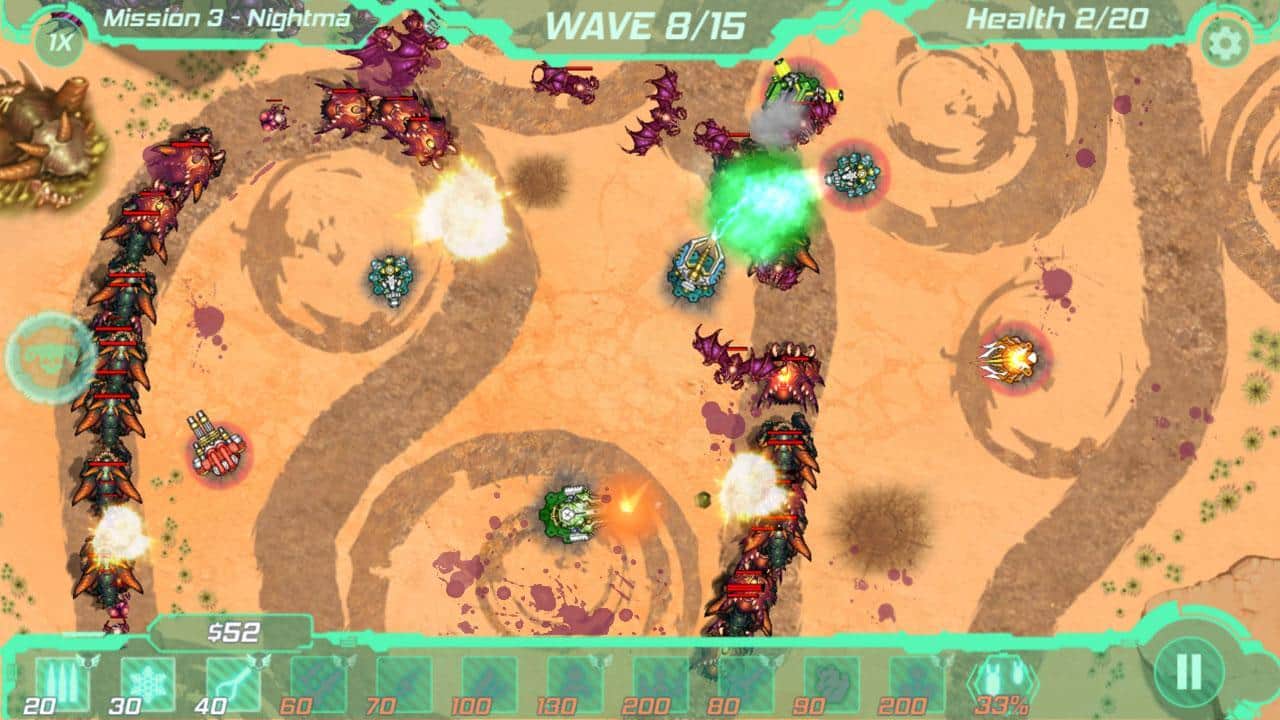Kule Savunma Bölgesi – Android için Kule Savunma türünde bir strateji oyunu, burada bilinmeyen uzak bir gezegeni uzay böceklerinin saldırısından korumanız gerekiyor. Böcekler her yönden üssünüze saldırıyor, savaş taktiğinizi geliştirin ve savunma kulelerinizi üssün etrafında akıllıca yerleştirin. Lazer topları, roket rampaları ve kuleler kullanarak yenilmez bir savunma oluşturun. Kuleleri ve silahları yalnızca gerekli olan noktalara yerleştirin ve kayıplarınızı en aza indirin. Oyun boyunca silahlarınızı ve kulelerinizi geliştirin, ayrıca yeni yüksek teknoloji kulelerini açın. Oyunda birkaç oyun modu ve zorluk seviyesi bulunmaktadır, size uygun olanı seçin.