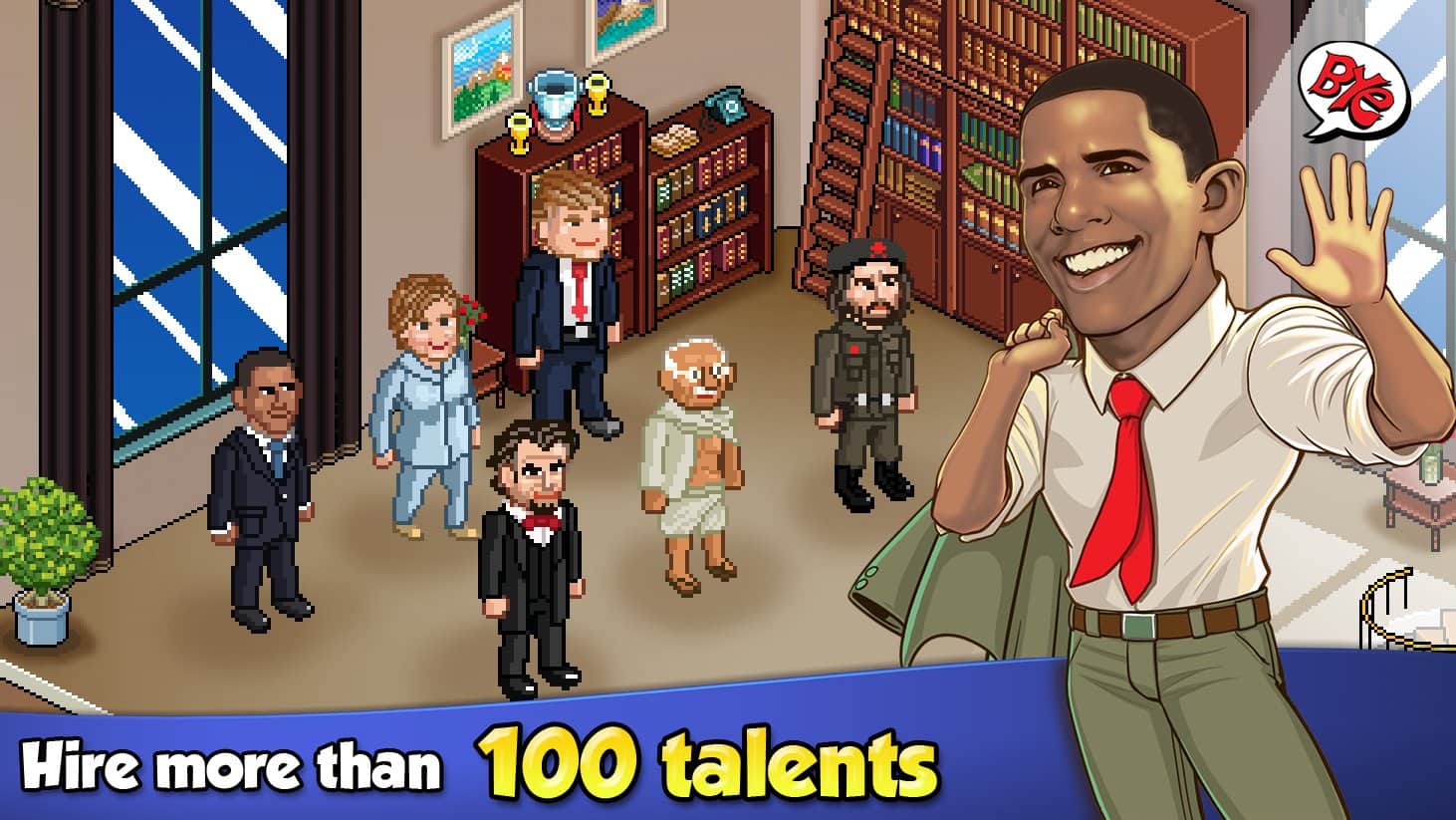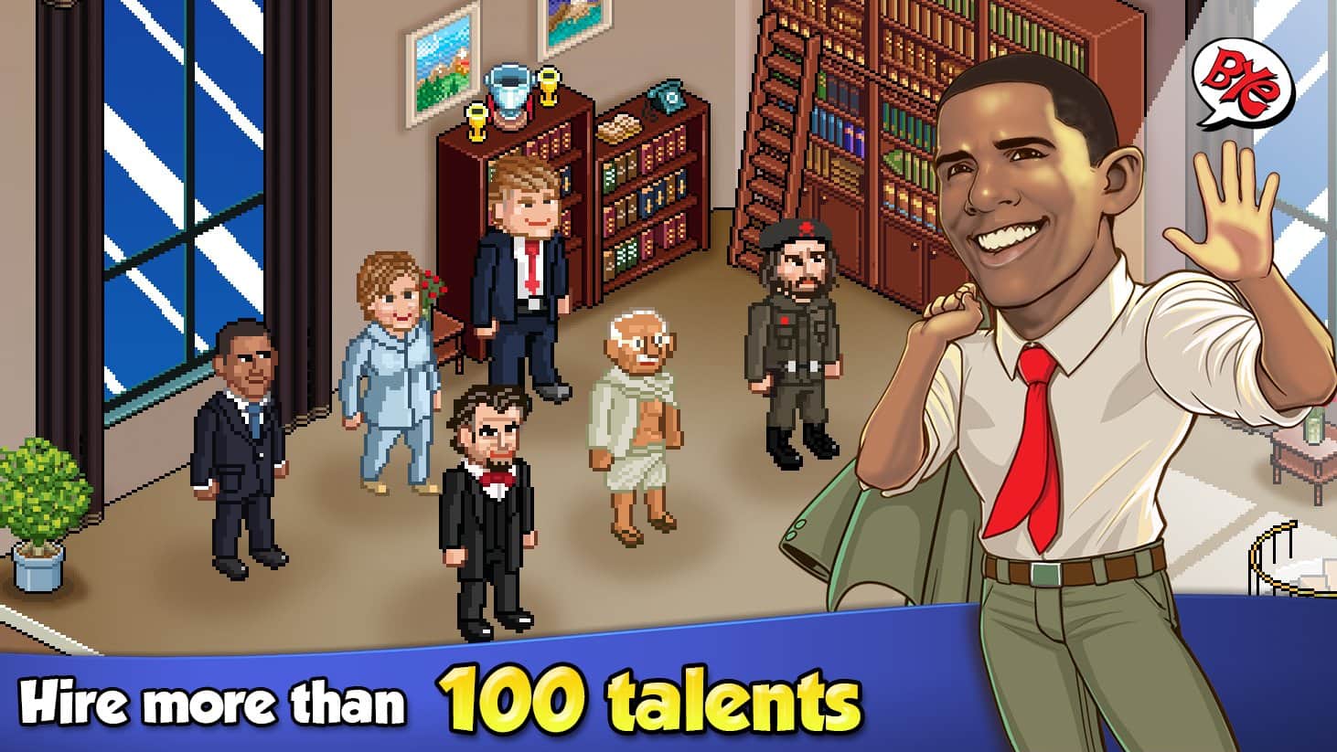 Bu tür için oldukça sıradışı olan grafik çözümüne başlamalıyız; piksel ve çizgi film grafiğinin bir karışımını içeriyor. Devamında, büyük bir işletme, mağaza, kafe, sosyal bina ve özel hizmetler seçeneği ile oldukça etkileyici bir oyun içeriğini belirtmek gerekiyor. Sizin rolünüz ise bu zenginliğin yöneticisi olmaktır. Bu arada, elbette kendi işinizi ve mülklerinizi sürekli genişletmeniz gerekecek. İşte burada oyunun bir diğer özelliğine geliyoruz; yardımcı olarak Donald Trump, Hillary Clinton veya Steve Jobs gibi tanınmış ve ünlü kişilerden birini işe alabilirsiniz.