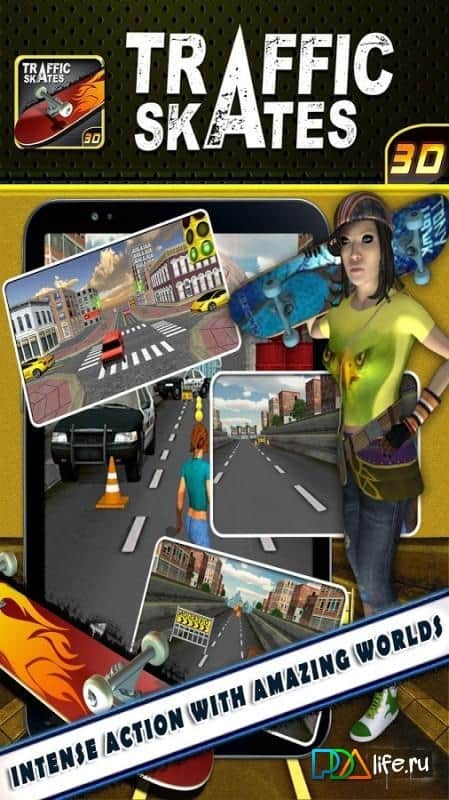 Trafik Kaykay 3D - klasik bir koşucu türü temsilcisi, en iyi geleneklerde yapılmış. Oyunun genel konsepti futuristik bir tarzda oluşturulmuş olup, gerisiyle Trafik Kaykay 3D, Android için pek çok benzerinden çok farklı değildir. Bir karakter ve ulaşım aracı seçtikten sonra, bu çeşitli kaykaylar ve tahtalar, dört benzersiz dünyada sonsuz bir yarışa çıkın, yolda engellerle çarpışmaktan kaçınmaya çalışarak ve jetonlar, bonuslar ve geliştirmeler toplayarak. Kazandığınız ödülleri, ekipman satın almak veya mevcut olanı geliştirmek için harcayabilirsiniz. Harika bir çarpıcı soundtrack, iyi bir üç boyutlu grafik ve her türlü akrobatik numarayı gerçekleştirme imkanı dikkat çekici.