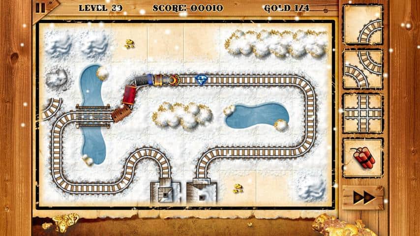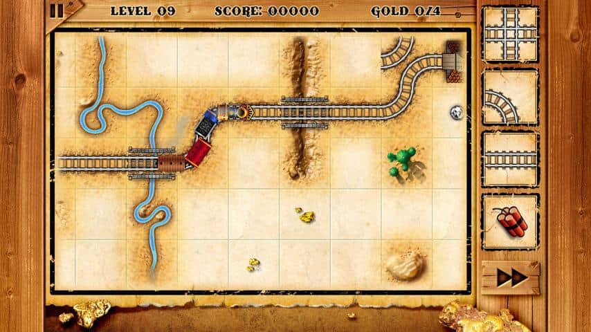 Altın Koşusu Treni - Bu Android oyununda amacınız, 125 harika seviyede üç farklı dünyada bir demiryolu inşa etmektir. Göründüğü kadar kolay değil, çünkü ray seçeneklerini oyun rastgele sunuyor ve zaman çok hızlı geçiyor. Tüm altınları toplamak ve bir sonraki seviyeye geçmek için raylardan bir zincir oluşturun.