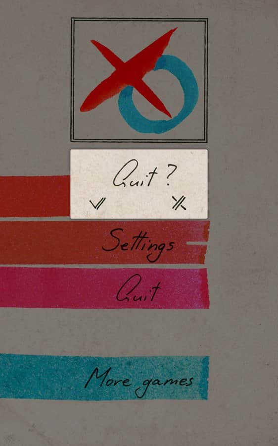 Tremendous Tic-Tac-Toe - android için XOX oyunu, alışılmadık bir çizim tasarımıyla. Bu oyunu herkes bilir; saatlerce oynayabileceğiniz bir oyun, örneğin: doktora randevu beklerken, süpermarkette veya toplu taşıma araçlarında. Oyun, elle çizilmiş çok renkli kalemlerle tasarlanmış alışılmadık bir görünüme sahip ve ayrıca özel müzikler içeriyor. Oynayın ve oyunun tadını çıkarın.