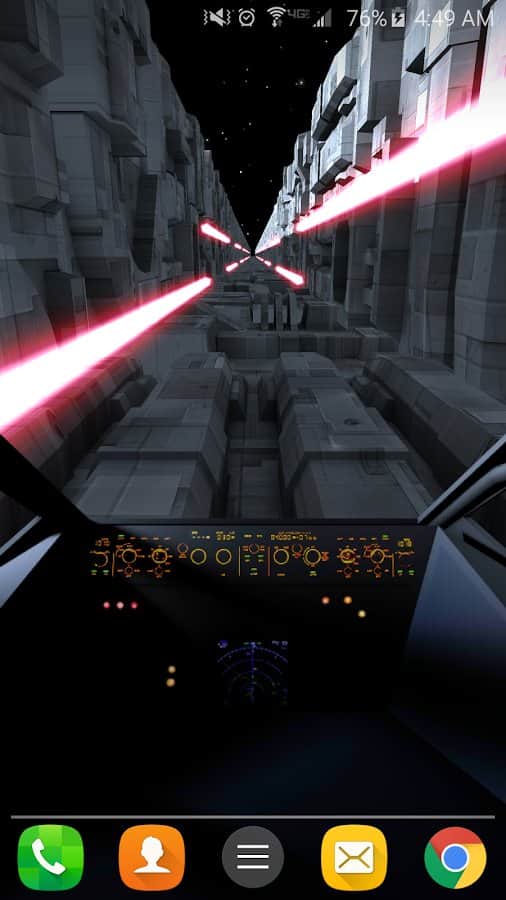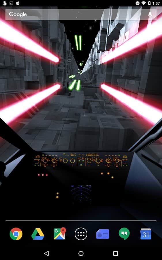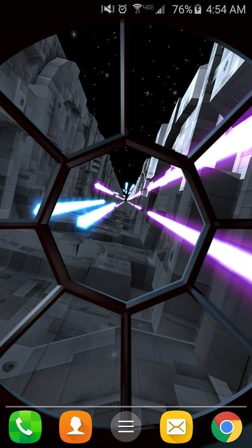 Hendek Koşusu Canlı Duvar Kağıdı – eğer 'Yıldız Savaşları'nı seviyorsanız, bu canlı duvar kağıtları tam size göre. Pilot kabinini kontrol altına alın ve geminizi dar boğazlarda hareket ettirin, düşmanların peşinden kaçmaya çalışın. Akselerometre ile pilot kabinini kendiniz hareket ettirin veya otomatik pilotu ayarlayın. Bu duvar kağıtları, rastgele oluşturulacak eşsiz boğazlarla ve geminin hareket hızını seçme imkanıyla sizi mutlu edecek. Telefonunuzun veya tabletinizin ekranına dokunarak düşmanlara lazerle ateş edin ve engelleri yok edin. Lazerin rengini ve ateş etme desenini kendiniz seçin.