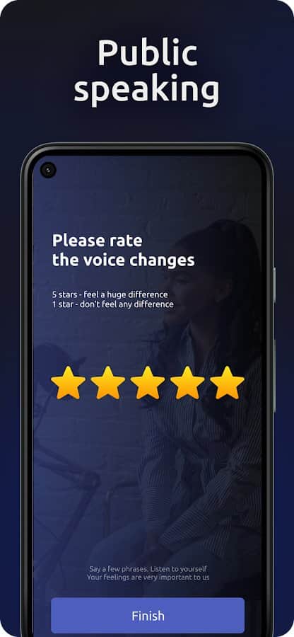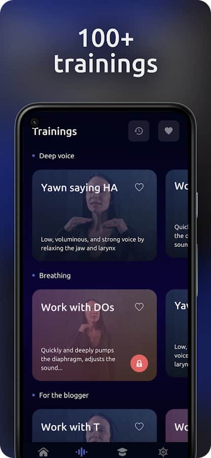 Ses ve konuşma eğitimi, diksiyon ve artikülasyon! - En başarılı iş insanları ve kuryeciler daima diksiyon yeteneklerini geliştirmektedirler, böylece diğer insanlar onları sadece anlayabilmekle kalmaz, aynı zamanda onlara hızlıca yakınlaşabilirler. Nefes pratiklerini öğrenin ve her gün özel dersler aracılığıyla kendi sesinizi eğitin. Başarılarınızın ve başarısızlıklarınızın detaylı istatistiklerini inceleyin, ses tonunuzu dikkatlice geliştirin, bireysel bir program aracılığıyla konuşmanızı iyileştirin ve belirli bir süre sonunda konuşma becerinizi başlangıç ve bitişle karşılaştırın.