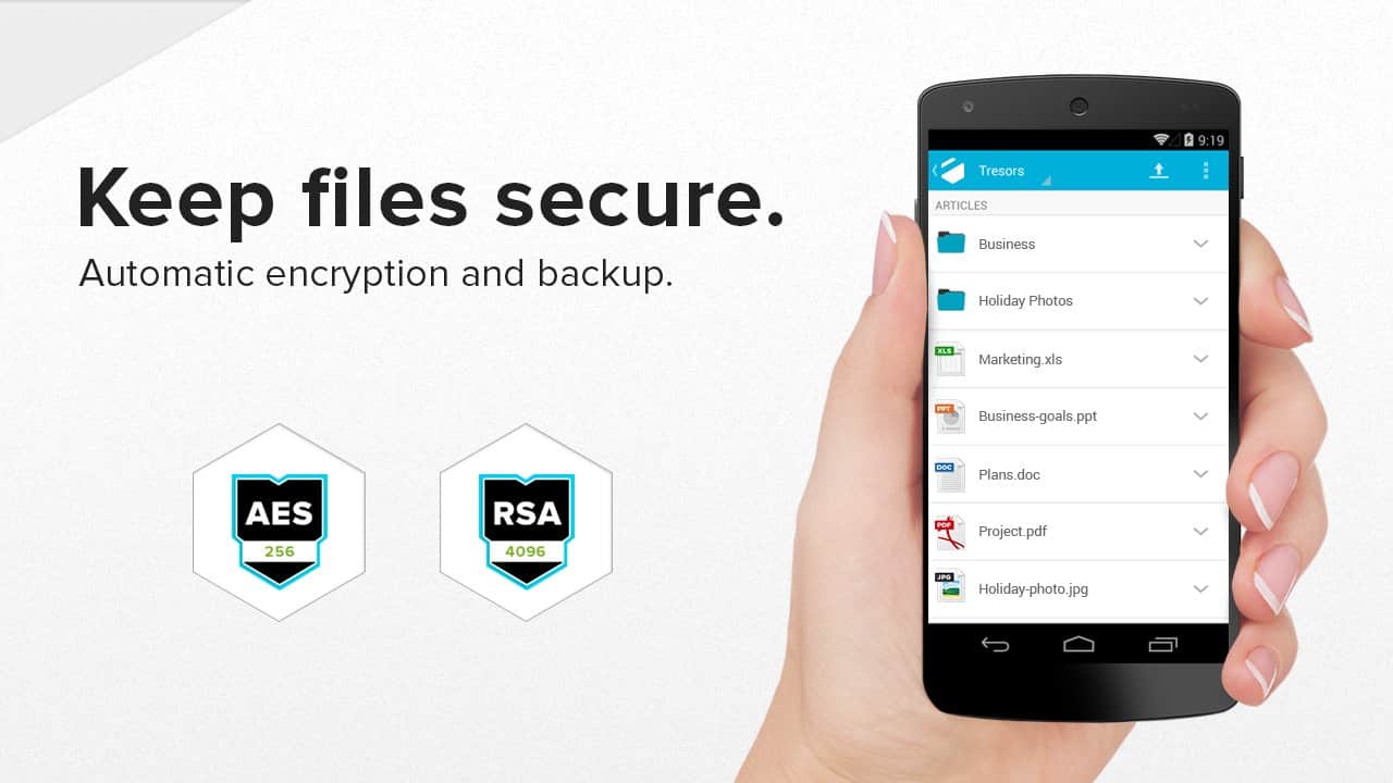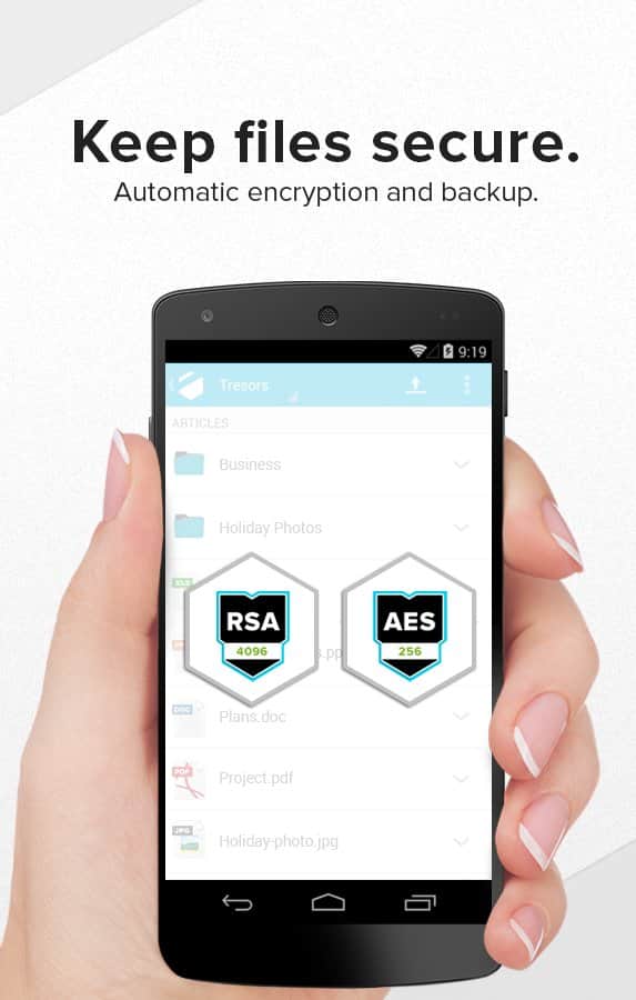 - Müşteri tarafında şifreleme, verilerinizi Android cihazınıza yüklerken Tresorit sunucularının iletilen verilere erişemeyeceğini garanti eder.
