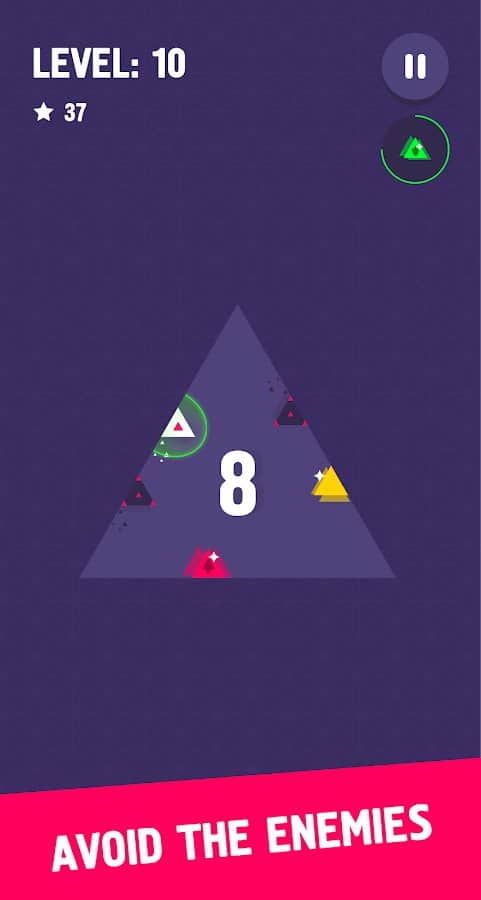 Üçgen Atlama Kahramanı - Ücretsiz bir kasual arcade oyunu - Android için hardcore bir arcade, burada beyaz üçgeni yöneteceksiniz. Bu Pop The Lock ve Flappy Bird tarzındaki oyunda, amacınız mümkün olduğunca hızlı hareket etmek ve düşmanlardan kaçınmaktır. Her seviyede sizi bekleyen kurnaz düşmanlar olacak, bu da oyunu geçmeyi çok zorlaştıracak. Seviyeleri geçerken düşmanlara çarpmamaya çalışın, aksi takdirde oyuna yeniden başlamak zorunda kalacaksınız. Her yeni seviyede zorluk daha da artacak ve oyunu geçmek için sıra dışı düşünme becerilerinizi devreye sokmanız gerekecek. Bu oyunda rekorlar kırın ve arkadaşlarınızla yarışın.