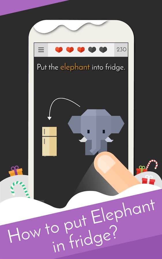 Tricky Test 2™: Dışarıda Düşün - Mantığınızı ve zekanızı test etmek ister misiniz? O zaman bu zor değil! Tek yapmanız gereken bu oyunu indirmek ve cevapların oldukça açık, ancak çok zor olacağı birçok seviyenin tadını çıkarmak. Bir fili buzdolabına sokmanız ve birçok başka bulmacayı çözmeniz gerekecek, üstelik zamanla ve hayat kullanarak. Her hata yaptığınızda bir hayat kaybedeceksiniz ve hepsi bittiğinde oyun sona erecek.
