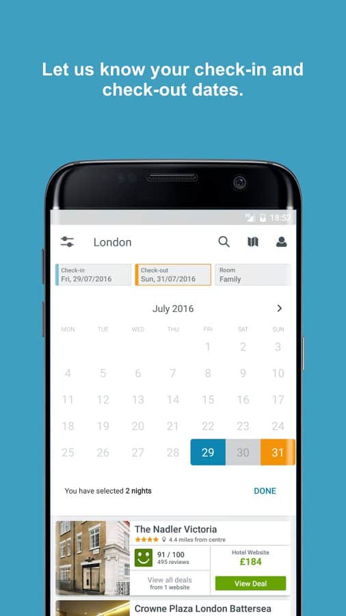 - oteli veya konaklama yerini kolayca arama, konum ve fiyat filtreleme;