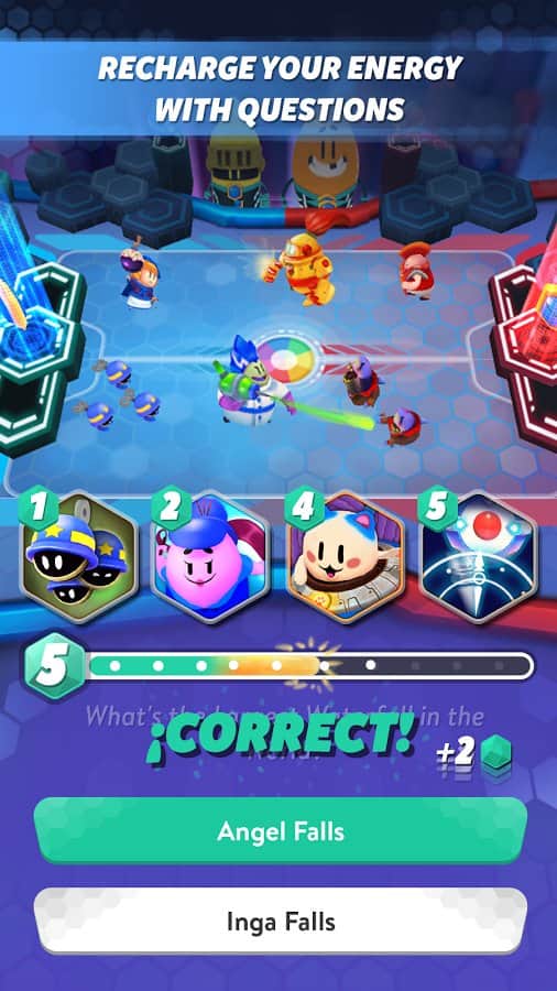 Trivia Crack Heroes – Android için bir strateji oyunu, burada arenada güçlü rakiplerle savaşacak ve sorulara yanıt vereceksiniz. Bu oyundaki ana göreviniz, yenilmez takımınızı toplamak ve onu savaş alanına göndermek, böylece rakibin enerji kalkanını yok etmek ve madalya kazanmaktır. Stratejik ve zihinsel yeteneklerinizi gösterin, sorulara doğru yanıt vererek savaşta ihtiyaç duyduğunuz enerjiyi kazanarak. Savaşçılarınızın benzersiz özelliklerini kullanarak düşmanları yok edin. Dünya genelindeki gerçek oyunculara meydan okuyun ve onlarla arenada savaşın.