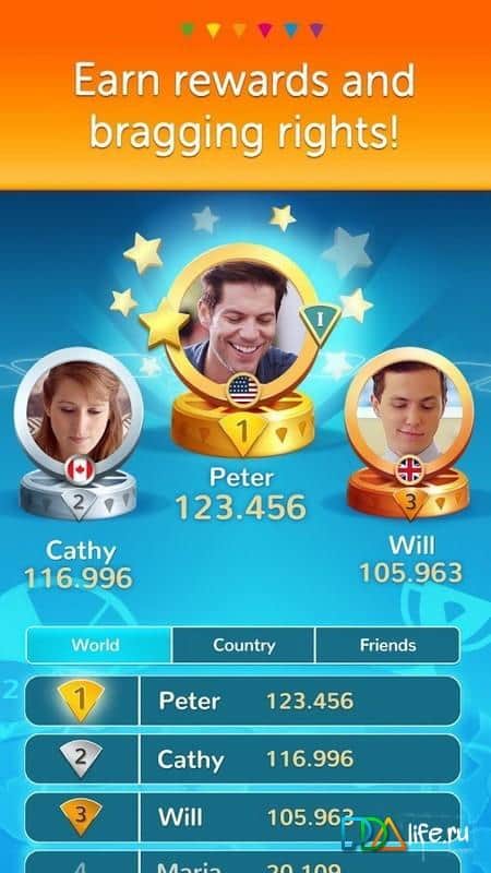 TRIVIAL PURSUIT & Friends – Android için bir bilgi yarışmasıdır, burada bilgi ve kültürünüzü sergilemeniz gerekecek. Bu oyunda, altı farklı kategoriden sorulara cevap vererek arkadaşlarınızla veya dünya genelindeki oyuncularla yarışacaksınız. Arkadaşlarınıza meydan okuyun ve farklı alanlardaki bilgilerinizi gösterin, sorulan sorulara doğru yanıtlar vererek. Çeşitli yarışmalara ve etkinliklere katılın, başarılarınızı toplayın. Diğer oyuncularla genel sohbet alanında iletişim kurun ve kendiniz zorlu sorular oluşturun.