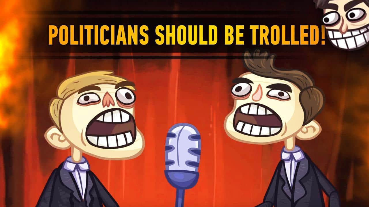 Troll Face Quest Siyaset - mizahi bulmacalar serisinin devamı, önceki bölümlerde çeşitli rollerde kendimizi deneme fırsatı bulmuştuk, ancak her zaman yanımızda olan arkadaşlarımız trollerdir. Bu sefer çeşitli politikacılara ve kamuoyunu etkileyen kişilere meydan okuyarak onları öfkelendirmeye çalışacaksınız ve size yine eski tanıdıklarımız yardımcı olacak. Görsel olarak oyun, serinin alışıldık tarzında tasarlandığı için hayranlar memnun kalacak.
