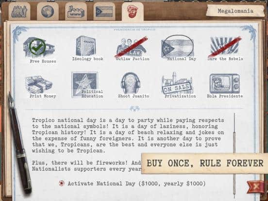 Tropico – küçük bir Karayip adasının başkanı rolünü üstleneceğiniz heyecan verici bir oyun. Karayip adası Tropico'nun yeni seçilen başkanısınız ve acilen modernleşmeye ihtiyacınız var. Adayı kontrol altına alın ve yollar, binalar ile iyileştirmelere başlayın; diğer ülkelerle askeri ve ticari ilişkilerinizi de unutmayın. Ülkenizi turistler için tropik bir cennete dönüştürün ve sayısız otel ve tatil köyü inşa edin. Bu oyundaki olanaklar sınırsız olacak ve bilge ve başarılı bir lider olabilirsiniz.