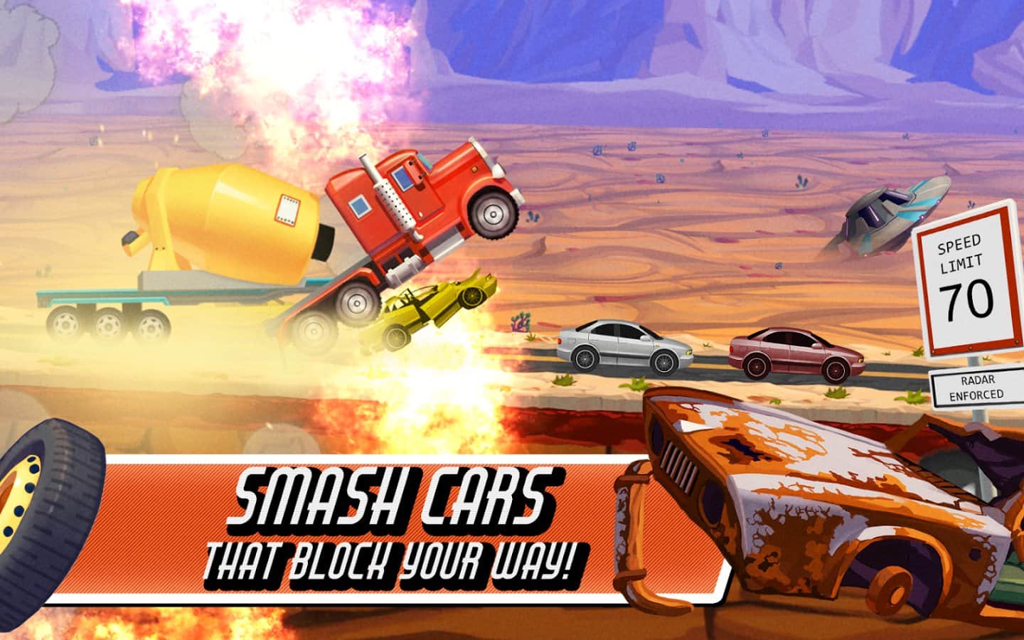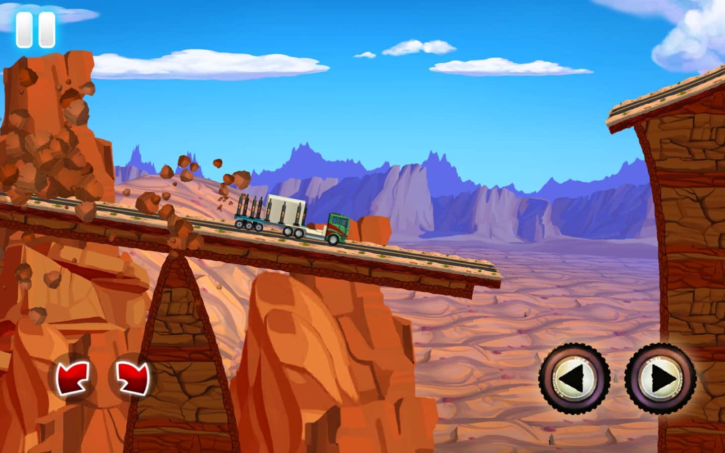 Kamyon Sürüş Yarışı ABD Yolu 66 – Android için gerçekçi fizik ile kamyon yarışları, burada büyük bir kamyonu kontrol edeceksiniz. Bu oyunda, yük taşıyan bir kamyonu kontrol altına alacak ve onu Amerika'nın dokuz eyaletini kapsayan yollar boyunca yönlendireceksiniz. Sedan otomobillerden kütüklere ve büyük römorklara kadar çeşitli yükleri taşıyın ve yükleri Arizona'ya sağlam bir şekilde ulaştırmaya çalışın. Dik yokuşları ve inişleri aşın, önünüzde giden araçlara çarpın ve yolunuzda askeri, çeteleri ve hatta uzay gemilerinin çıkabileceğini göz önünde bulundurun. Oyunda toplam 12 seviye, 4 eşsiz kamyon ve ayrıca mükemmel canlı grafiklerle karşılaşacaksınız.