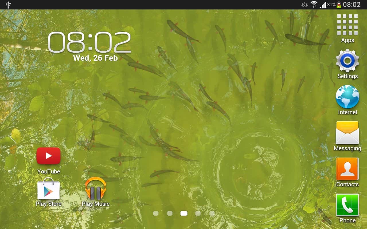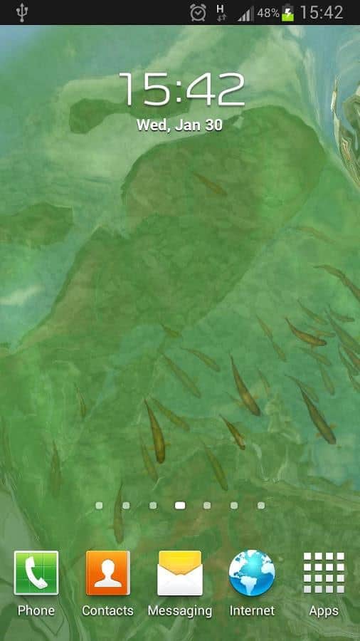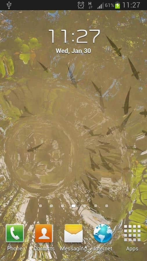 Gerçek Su Canlı Duvar Kağıdı – yüzen balıklarla sakin bir gölette hoş ve huzurlu canlı duvar kağıtları. Ayarları kullanarak balık sayısını, arka planı ve göletin çevresini belirleyin. Duvar kağıtları dokunuşunuza yanıt verecek.