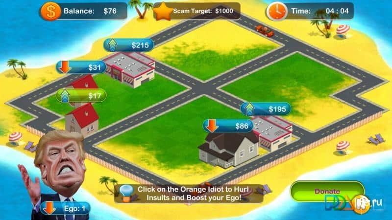 Donald Trump, ABD'deki en ünlü iş insanlarından biri ve dünyanın en zengin insanlarından biridir. Trump, servetini madencilik, inşaat, kumar ve elbette gayrimenkul spekülasyonu alanlarında kazandı. Trump Tycoon, Trump rolünü üstleneceğiniz ve ucuz gayrimenkul alım satımı yapacağınız bir kaza arcade oyunudur. Oyun süreci basit ve anlaşılırdır, ancak işte bu, onun cazibesini oluşturur. Bu yaklaşım, her oyuncunun kazanabileceği eğlenceli ve sürükleyici bir arcade oluşturmayı mümkün kılar. Bu da maksimum oyuncu sayısını yaratır. Bu proje, boş zamanınızı değerlendirmek için size yardımcı olacaktır.