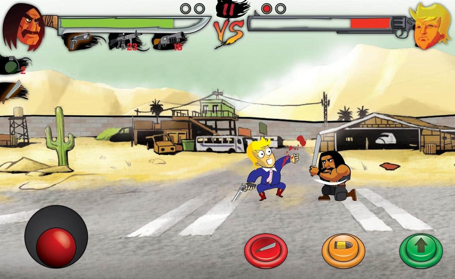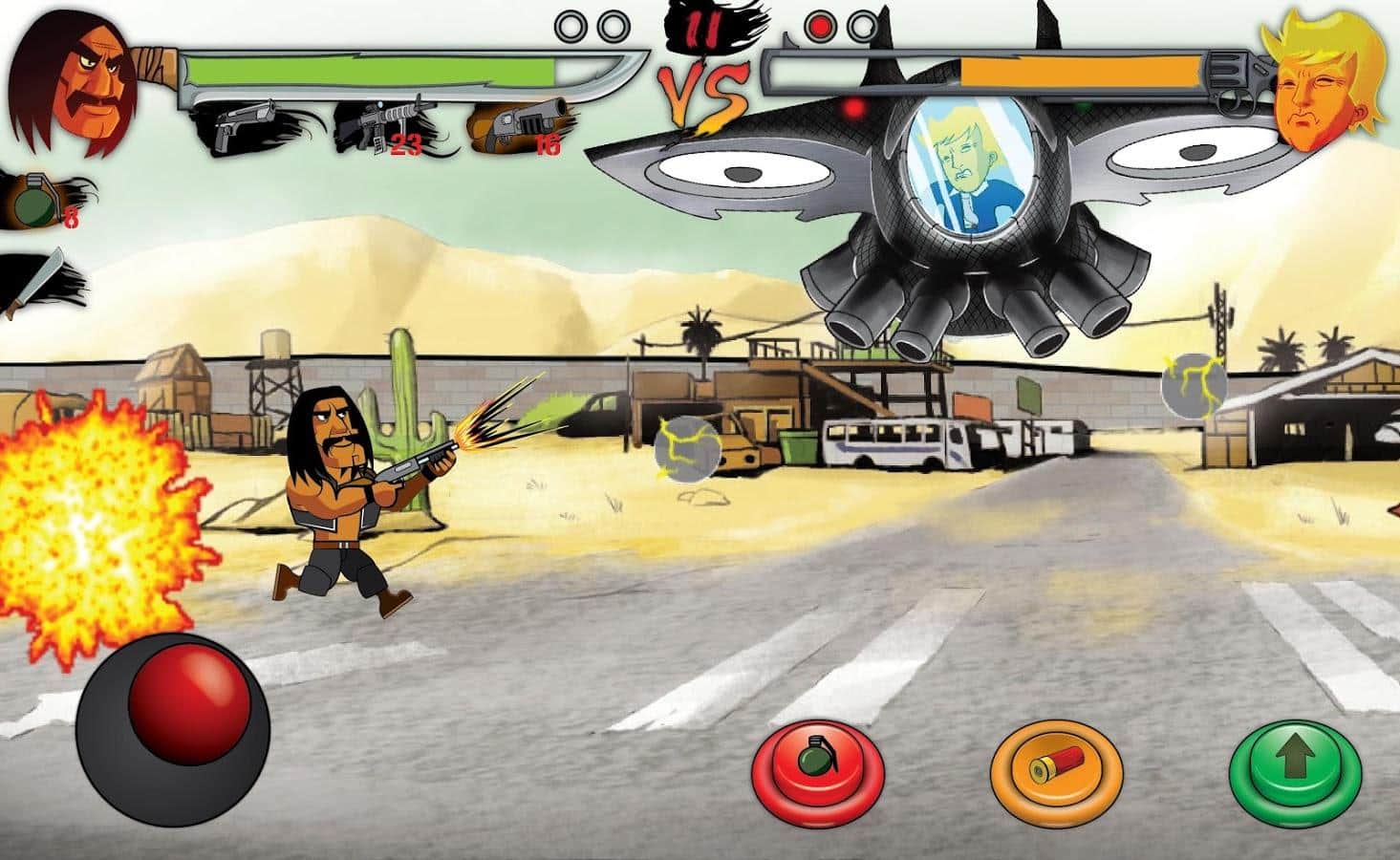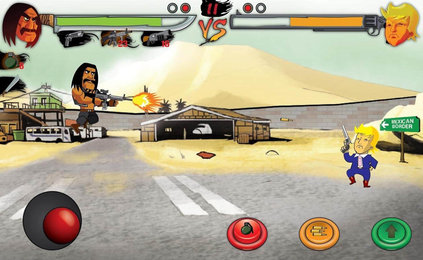 Trump vs Machote - Eğer bir politikacı ve dünyanın en zengin insanlarından biri, en tehlikeli Meksikalılardan biriyle savaşa girerse ne olur? İşte bu oyun böyle ortaya çıkıyor; Trump'ı, evet o ünlü Trump'ı yenmeniz gereken oldukça basit bir dövüş oyunu. Her yeni seviye giderek daha zorlaşacak ve rakibiniz giderek daha öngörülemez hale gelecek.