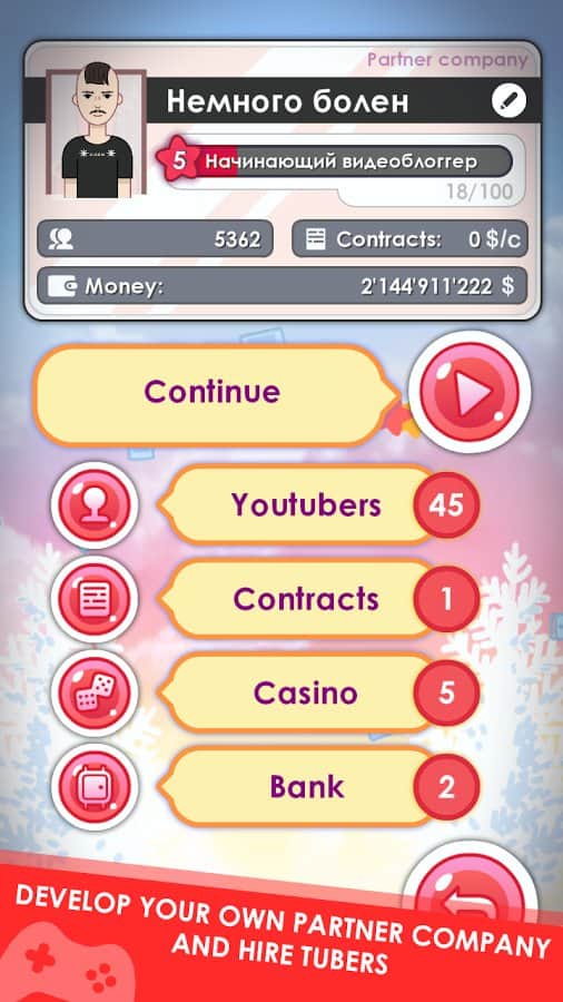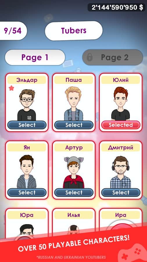 YouTuber'lar - tıklayıcı - başladığınızda kimseye bilinmeyen bir YouTuber olacaksınız, ancak ekranınıza tıklarken popülarite kazanabilir, para kazanabilir ve yeni sözleşmeler imzalayabilirsiniz. Ayrıca burada günümüz YouTube'unda meydana gelen bazı sorunlar ve konular oldukça alaycı bir şekilde ele alınmaktadır. Örneğin, çevrimiçi kumarhaneleri ve finansal piramitleri tanıtmanız gerekecek, ama bu sadece bir oyun, bu yüzden daha zengin ve popüler olun!