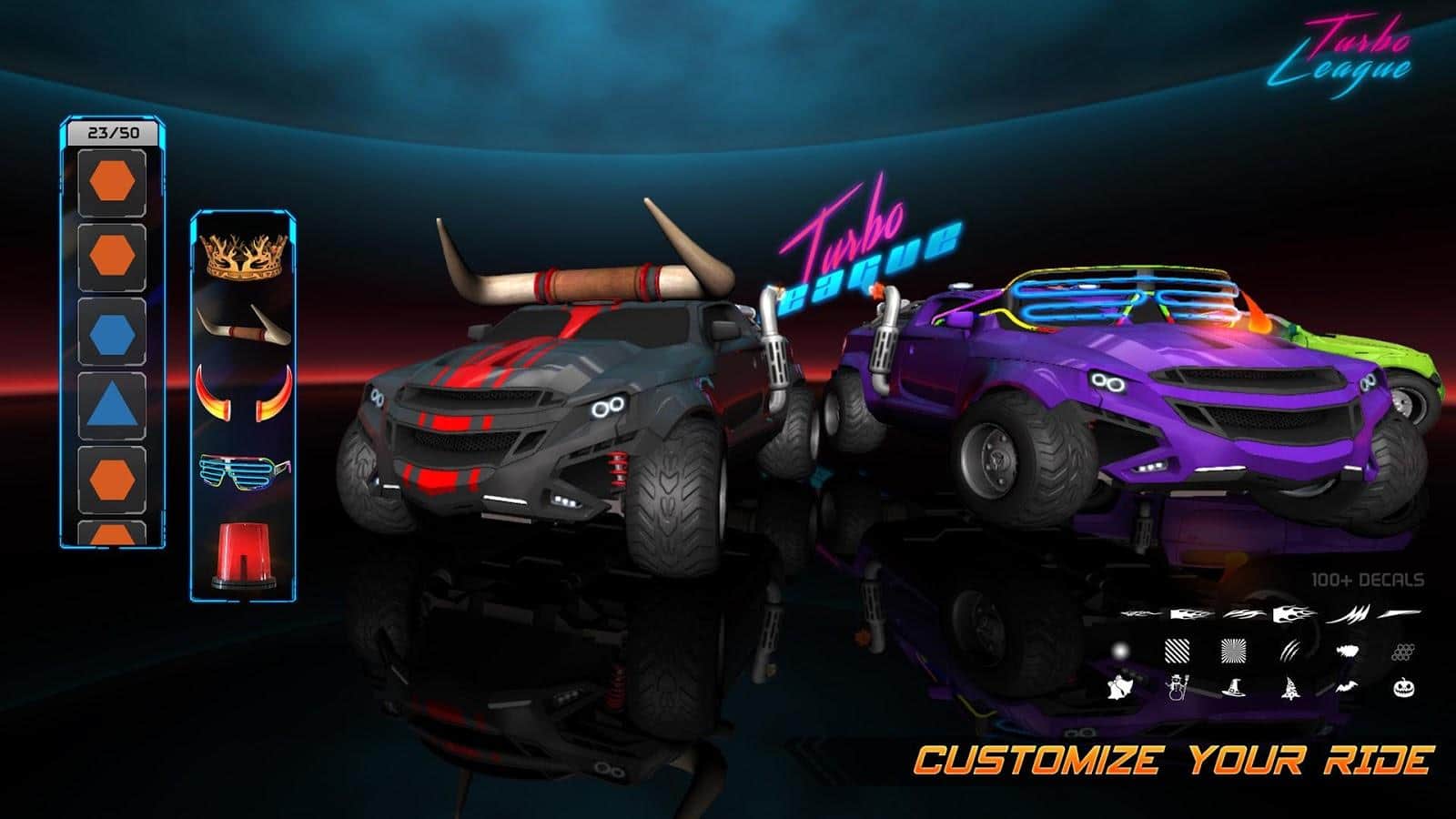 Turbo Ligi – hızlı bir aracı yönetin ve onu futbol sahasında sürün. Bu oyunda arabanızı kontrol edeceksiniz ve futbol oynayacaksınız. Aracınızı son hızına kadar hızlandırın ve dev topa vurun, onu rakip kaleye sokun. Dinamik maçlara katılın ve mümkün olduğunca çok gol atmak için inanılmaz numaralar ve manevralar yapın. Yeni araç modellerini keşfedin ve dış görünümünü istediğiniz gibi değiştirin. Arkadaşlarınızla 3'e 3 maçlar düzenleyin ve diğer oyuncularla da oynayın. Oyun, sizi gerçekçi fiziği ve renkli grafikleri ile mutlu edecek.