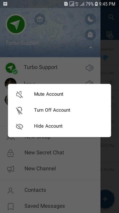 - Hesap yönetimi (geçiş, silme, gizleme);