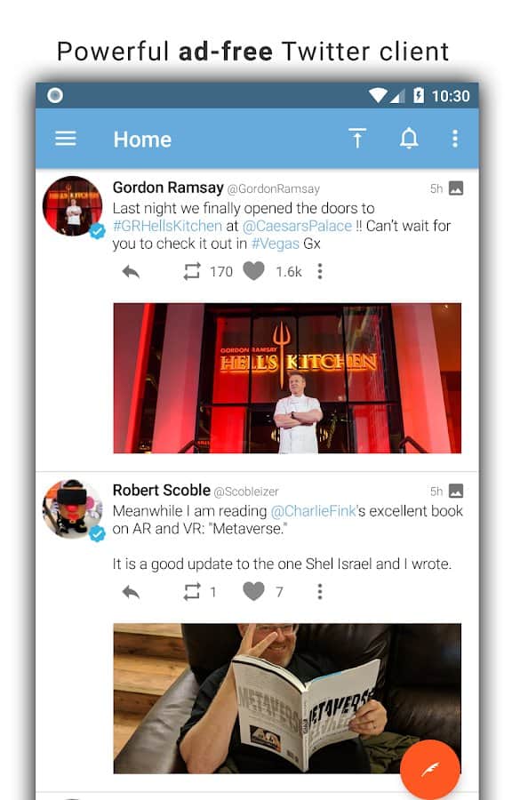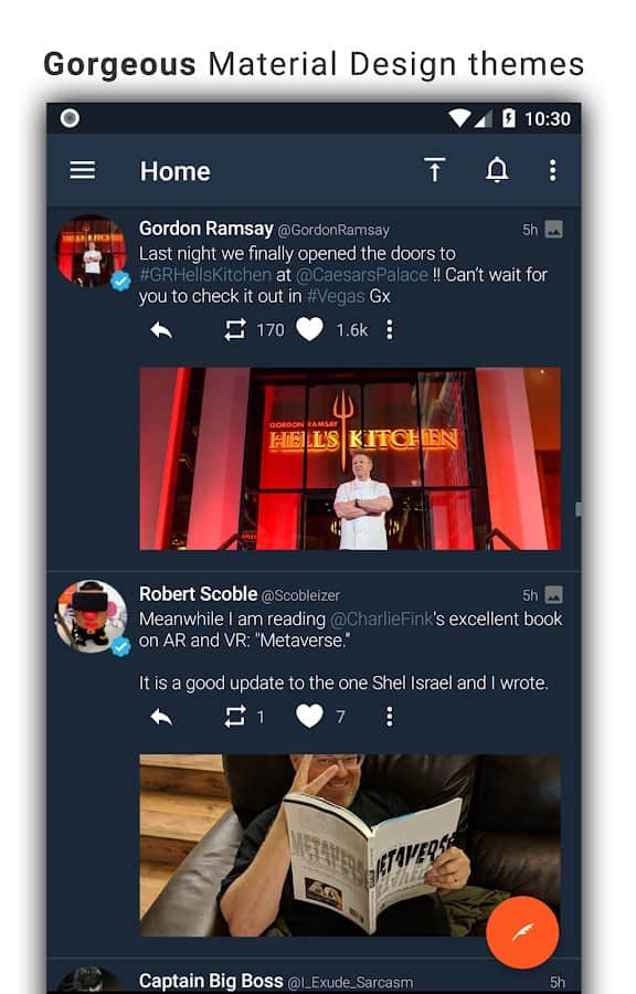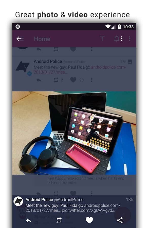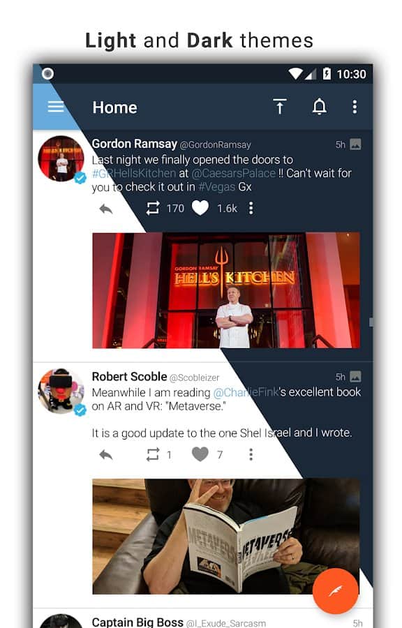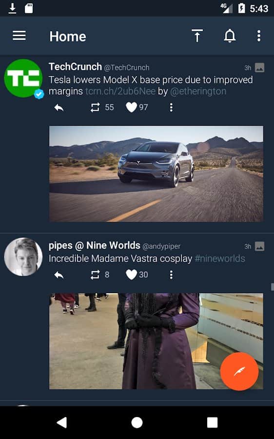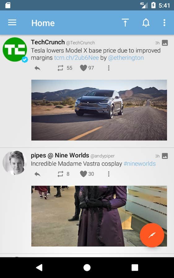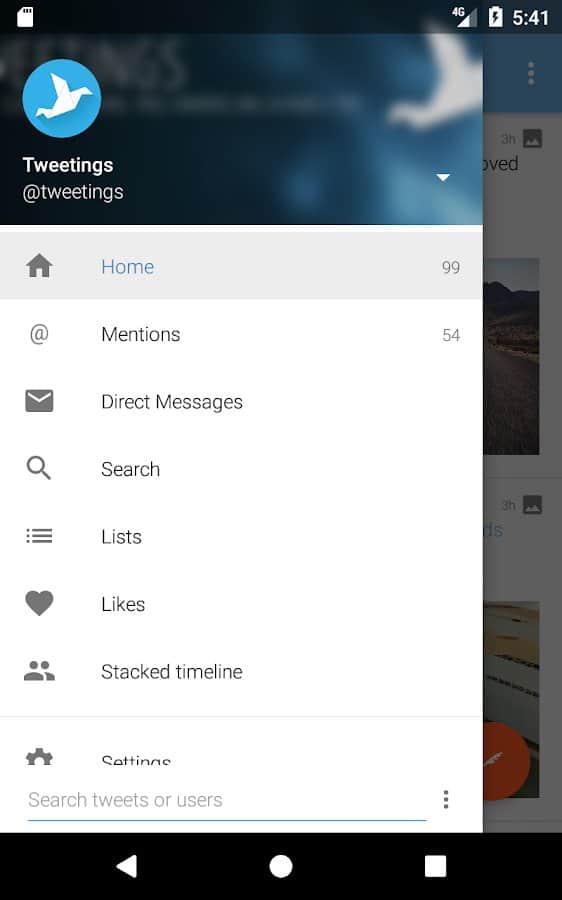 Tweetings for Twitter - Android için şık bir tasarıma sahip başka bir Twitter istemcisi. Uygulama temaları destekliyor, bu yüzden görünümünden asla sıkılmayacaksınız. En sevdiğiniz tweetleri okuyabilir ve en kullanışlı Twitter istemcisinde kendi tweetlerinizi paylaşabilirsiniz. Program, uzun süre kafa karıştırmadan kullanabileceğiniz rahat bir kontrol sunuyor.