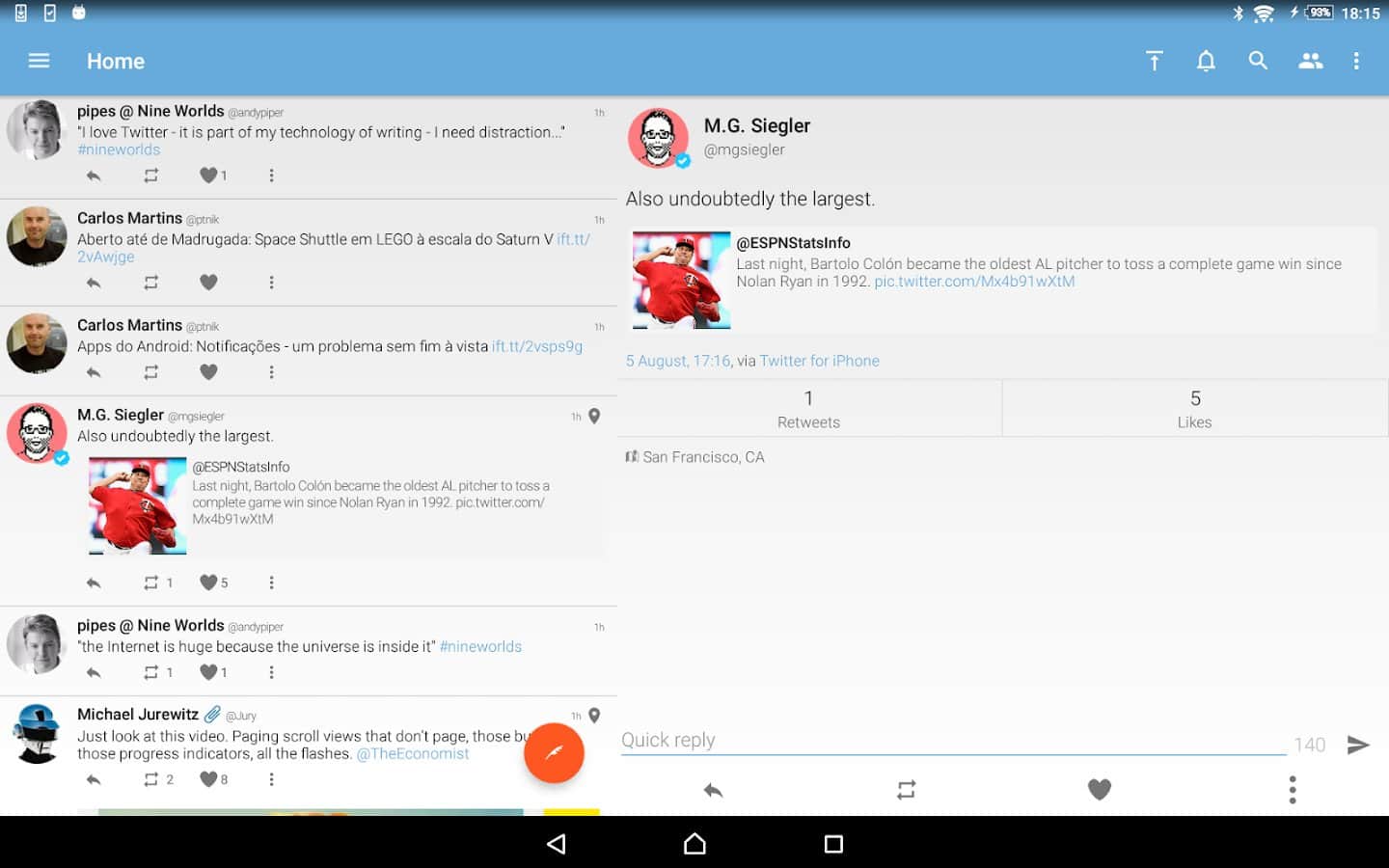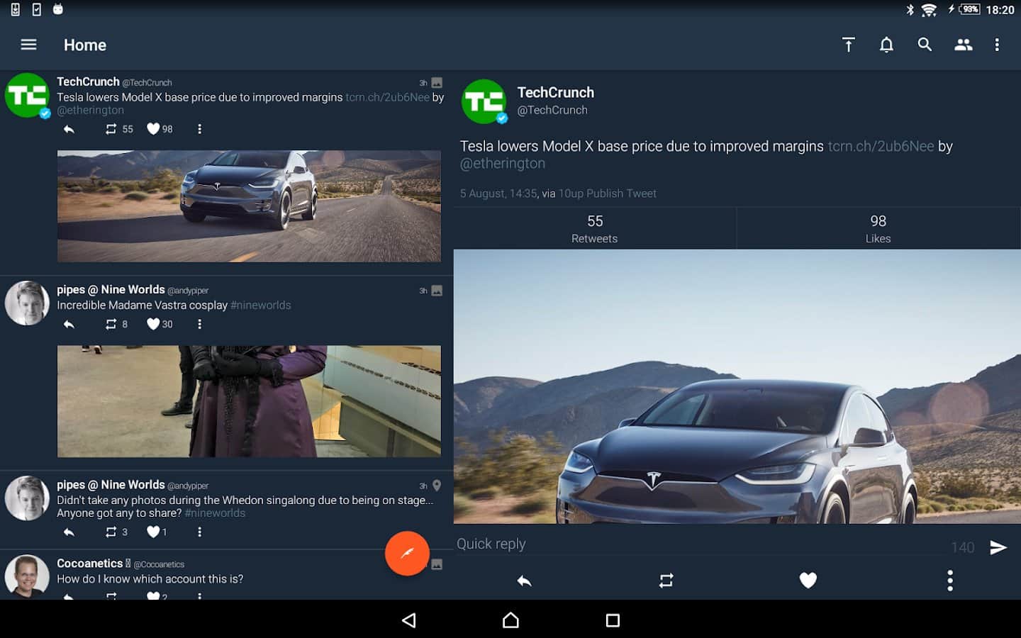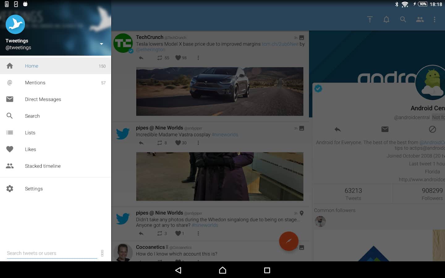Yorumlar ile Tweetings for Twitter üzerinde Android