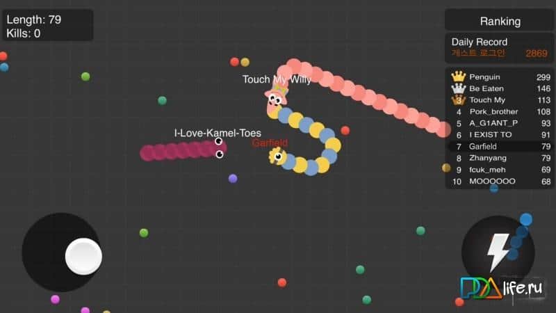 Dönme Yılan Pro – eğlenceli bir yılanı kontrol edin ve ona tüm engellerin arasından yol açın. Bu oyunda, yılanınızı kontrol edeceksiniz ve renkli noktaları yiyerek boyutunuzu artıracaksınız. Ana hedefiniz yılanınızı maksimum boyuta ulaştırmak olacak, ancak bunu yapmak o kadar kolay olmayacak, çünkü etrafınızda birçok rakip olacak. Bir parmağınızla ekrana dokunarak yılanınızı ileriye yönlendirin ve diğer yılanlarla çarpışmalardan kaçının. Eğer başınızla başka bir yılanla çarpışırsanız, oyun sizin için sona erecek ve her şeye baştan başlamak zorunda kalacaksınız. Bu fırsatı düşmanı yok etmek için kullanın.
