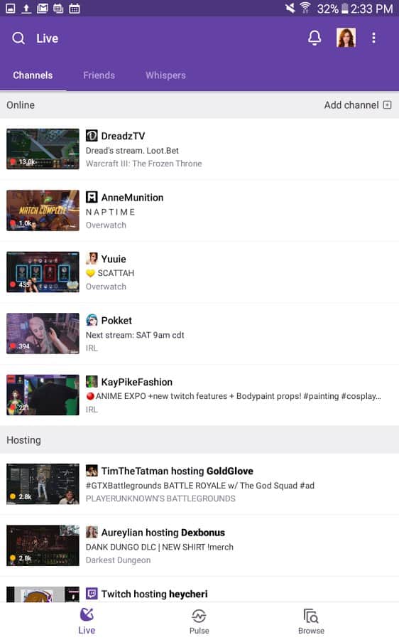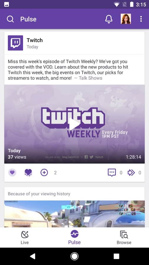 Twitch - Favori oyunlarınızın yayınlarını izleyebileceğiniz ve dünya genelindeki oyuncularla iletişim kurabileceğiniz ilginç bir uygulama. Tek yapmanız gereken internete bağlanmak, sevdiğiniz oyunun kanalını bulmak ve videoları gerçek zamanlı olarak izlemek.