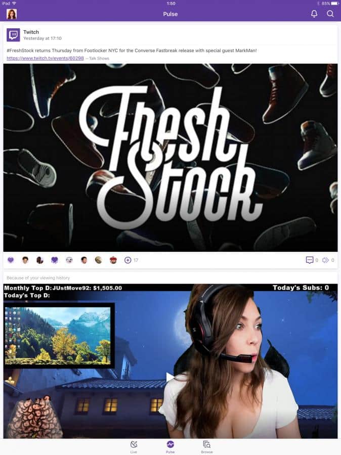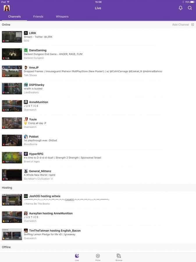 Twitch - Bu uygulama her oyuncu tarafından bilinir, çünkü bu internet kaynağında neredeyse tüm olası oyun turnuvaları ve hatta yaratıcılık yarışmaları gösterilmektedir. Bu uygulama, yalnızca PC başında değil, her yerde canlı yayının tadını çıkarmanız için oluşturulmuştur. Tek ihtiyacınız olan bir internet bağlantısıdır ve eğer sohbet etmek istiyorsanız bir hesap kaydetmelisiniz.