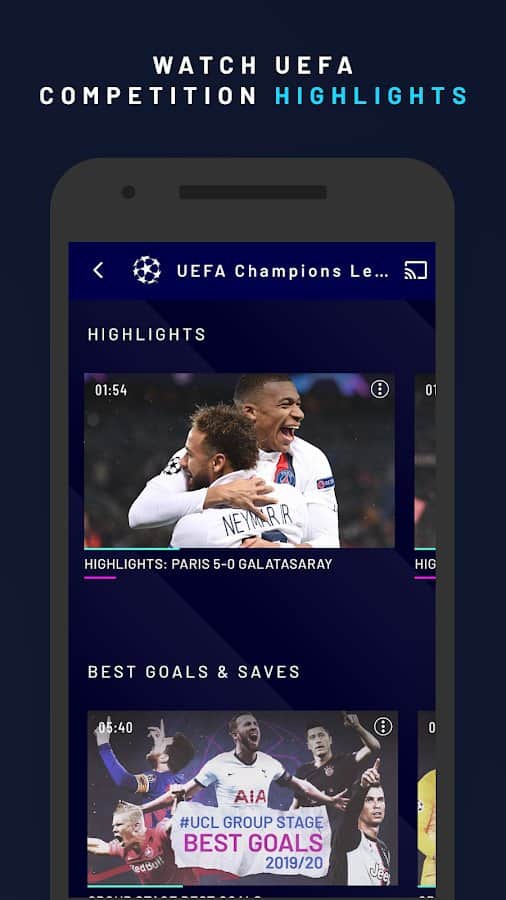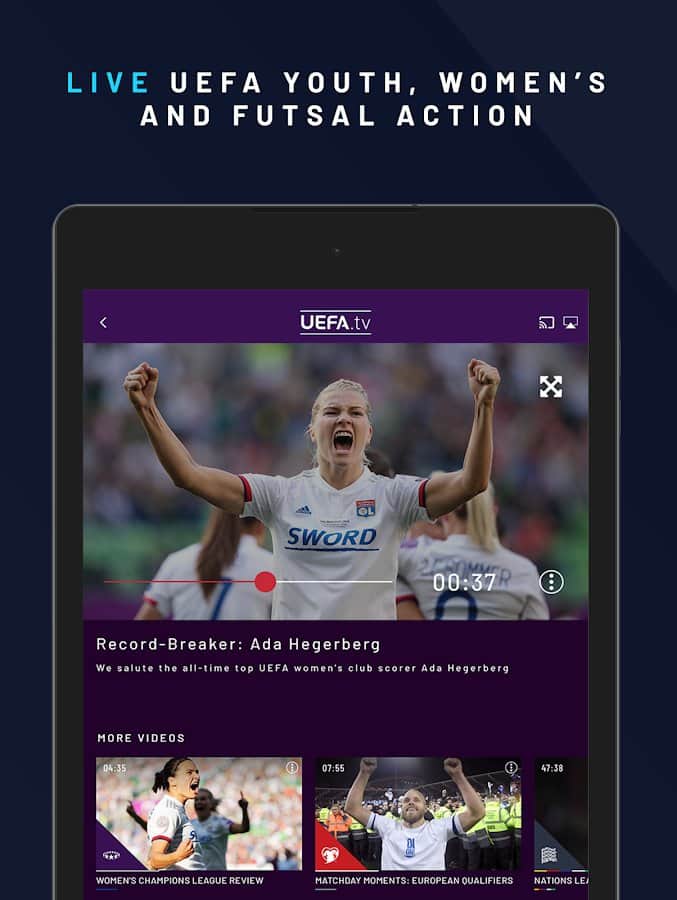 UEFA.tv Her Zaman Futbol. Her Zaman Açık. uygulaması ile kaydolduktan sonra, UEFA maçlarının en iyi anlarını serbestçe izleyebilir, maçların tekrarlarını takip edebilir, oyun sonuçlarını analiz edebilir, oyuncu etkinlik günlüklerini görüntüleyebilirsiniz vb. En güncel şampiyona olayları, klasik maçlar, efsanevi oyuncuların başarıları hakkında bilgi sahibi olanlardan biri olacaksınız. Futbol dünyasından hikayeleri okuyun, kadınlar ve genç liglerini sınırsız bir şekilde çevrimiçi olarak izleyin.