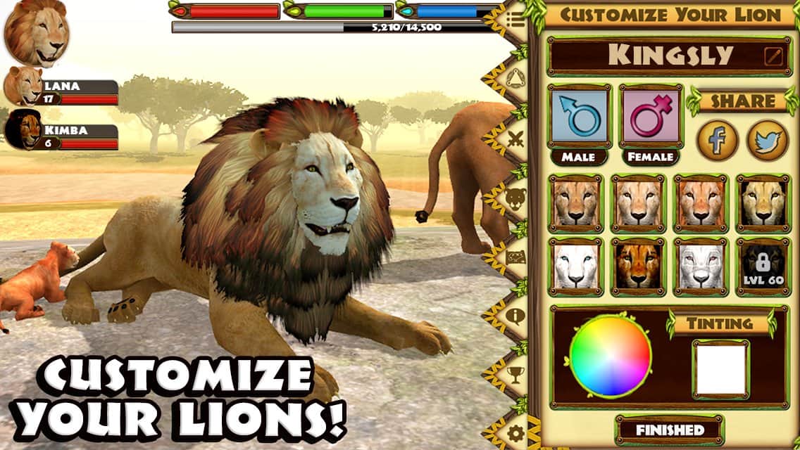 Son Aslan Simülatörü – Android için gerçekçi bir aslan simülatörü, burada en vahşi avcı olacaksınız. Bu oyunda dev bir avcının kontrolünü alacak, devasa açık bir dünyada hareket edecek, yiyecek arayacak ve düşmanlarla ölümcül çatışmalara gireceksiniz. Kahramanınız açlık, susuzluk ve yorgunluk hissedecek, hayatta kalmak için enerjisini yenilemelisiniz. Boyunuzdan daha büyük düşmanlarla dövüşün ve onları yenerek zafer kazanın ve deneyim kazanın. Diğer aslanlar üzerinde hakimiyet kurun ve sürünün lideri olun, yavrularınızı yetiştirin. Bu oyunda aslanınızı tamamen kendi isteğinize göre kişiselleştirebilir, cinsiyetini seçebilir, bir isim verebilir ve hatta tüy rengini ayarlayabilirsiniz.