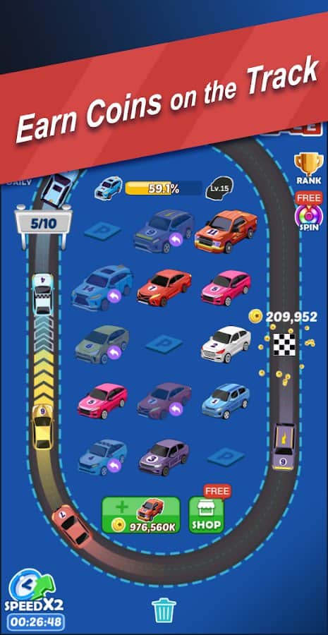 Son Birleştir Otomobiller: Tembel Sürüş & Yarış Tycoon - Kendi yarış pistinize hoş geldiniz, onu dünyadaki tüm pistlerin en iyisi yapın! Spor otomobil koleksiyonlarınızı oluşturun, diğer oyuncularla birleştirin ve en iyi ve talep gören pistleri oluşturarak para kazanın. Eğer aynı seviyede iki arabanız varsa, onları birleştirin ve daha yüksek seviyede bir araba alın. 50'den fazla arabanın kilidini açabilirsiniz, onları çeşitli mini pistlere bırakın ve daha fazla para kazanın. Her gün şans çarkında para kazanın, hızlandırmalar alın, pistinizi liderler listesinin birinci sırasına çıkarın.