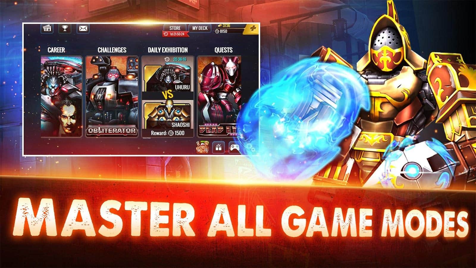 26.01.2017 - En güçlü robotlara karşı zaman denemelerinde dövüş becerilerini test et. - Yeni gümüş robotlarla - Siber-yüz ve Trigor ile meydan oku. - Galibiyet, yeni ve özel robotlar - Ejderha, Tirano ve Han'ı kazandırır.