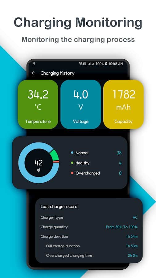 Akıllı Şarj - Smart Charging - Telefon için her zaman en önemli şey batarya olduğundan, durumu sizin için en fazla önem taşımalıdır. Bu kullanışlı uygulamanın içindeki kullanıcı ayarlarına gidin ve tüm yararlı bilgilere erişim sağlayın: sıcaklık, voltaj, kapasite, tip, tam şarj süresi, kalite ve diğerleri. Mevcut fonksiyonlarla istediğiniz zaman akıllı şarjı açabilir, gücü optimize edebilir veya pil sağlığını koruyarak alarm şarjını kullanabilirsiniz. Telefonunuzu uzun süre kullanmak için bataryanın ömrünü uzatın!