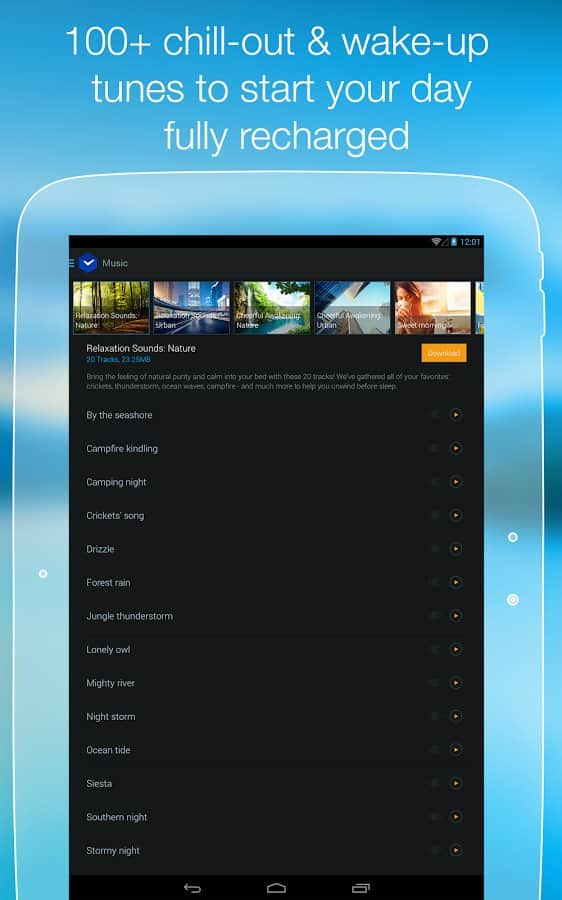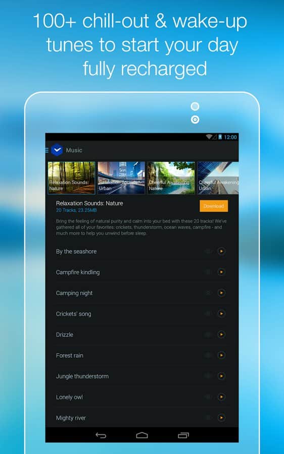 - Hoş bir uykuya dalma ve kolay bir uyanma için 100'den fazla özel melodi içerir.