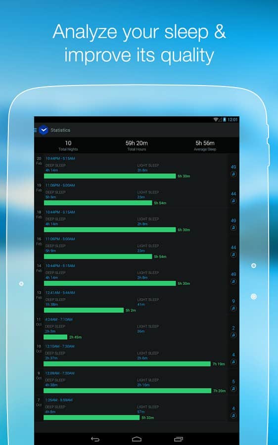 - Uyku döngüleri ve evreleri hakkında ayrıntılı istatistikler sunar