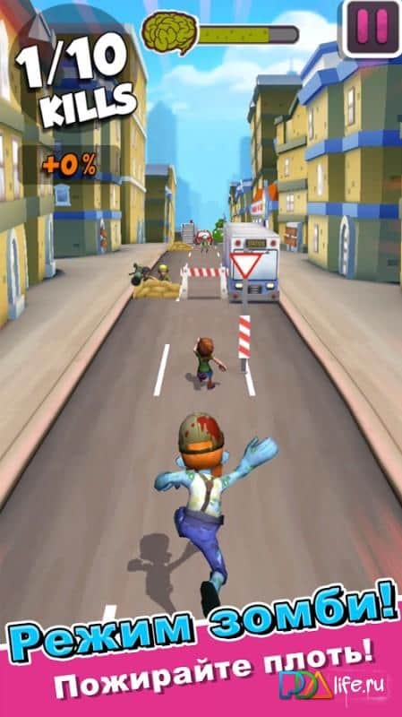 Ölümsüz Şehir Koşusu - klasik bir dikey koşucu, alışılmış oyun mekaniği ile, ileriye doğru koşun, engelleri aşın, paraları ve bonusları toplayın, düşmanlarla çarpışmaktan kaçının. Oyun hikayesi de orijinallikten yoksun, şehre zombi salgını düştü ve sadece birkaç kişi hayatta kalabildi, bunlardan biri de sizsiniz. Görünüşte hiçbir yenilik yok, ancak durum böyle değil, oyunun yaratıcıları birçok ilginç özellik gerçekleştirdi. Örneğin, kendi ölüm vananızı kullanma imkanı var, eğer kaçmaktan sıkıldıysanız, bu aracın direksiyonuna geçin ve beyin yiyicileri acımasızca ezin, tabii ki vanayı geliştirebilir ve ilerletebilirsiniz. Ya da tamamen farklı bir yola gidebilir ve yürüyen bir ölü rolünde şansınızı deneyebilirsiniz, yani seçim tamamen size ait. Diğer yönleriyle Ölümsüz Şehir Koşusu, alışılmış bir arcade koşucusudur.
