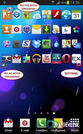 - Widget, aktif uygulamaları Task Killer'lar gibi kapatmanıza olanak tanır.