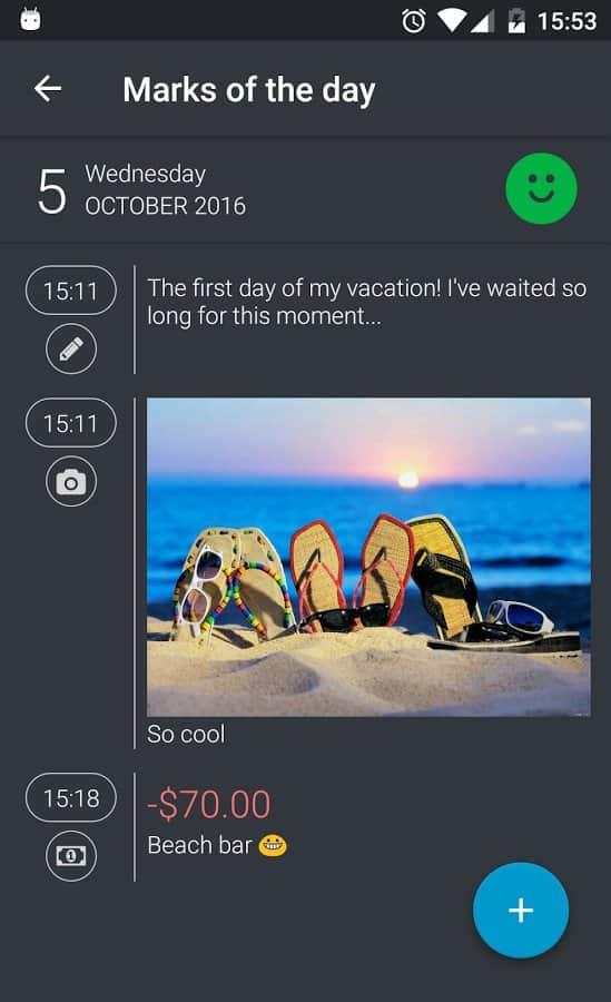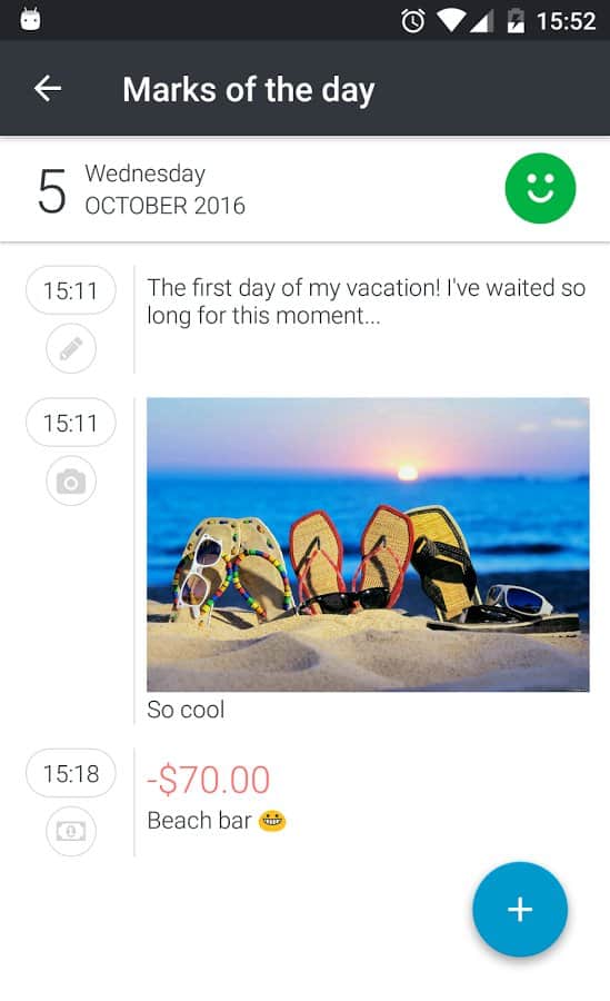 Evrensel Günlük - eğer duygularınızı, hislerinizi ve deneyimlerinizi kaydetmek, seyahatinizin, tatilinizin hikayesini yazmak, diyetinizi ve yemek yeme programınızı oluşturmak, finanslarınızı kontrol etmek ve bütçenizi yönetmek istiyorsanız, "Evrensel Günlük" uygulaması tam size göre. Özellikler: