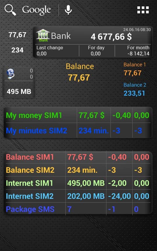USSDDualWidgetPro - Android cihazının bakiyesini takip etmek için bir uygulama. Zengin özellik ve işlev seçenekleri her kullanıcının ihtiyaçlarına göre uygulamayı ayarlamasını sağlayacak ve USSDDualWidgetPro tamamen Türkçe dilinde olduğundan bu özel bir çaba gerektirmeyecek. Ayrıca, iki sim kart ile çalışma imkanı sunması, benzer uygulamalarda sıkça rastlanmayan bir özelliktir.