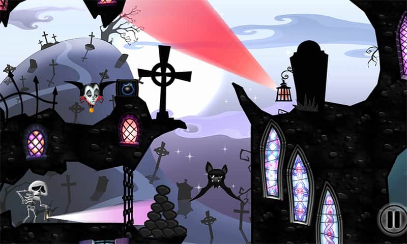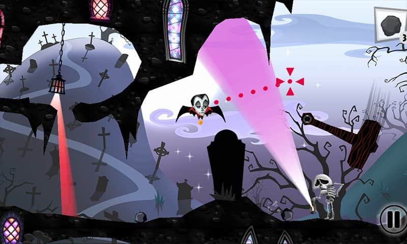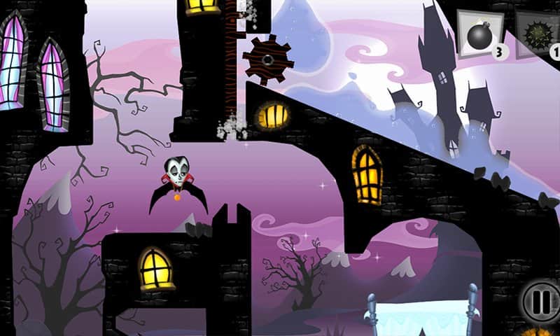 V Vampir için - android için bir oyun, sizi olağanüstü bulmacalar ve bilmecelerle dolu büyüleyici bir dünyaya götürecek. Küçük vampire, eski kalenin kalıntıları ve gizemli ormandan geçerek güzel prensesi bulmasına yardım etmeniz gerekiyor. Bu onun arzularının nesnesi, onun kırmızı kraliyet kanı.