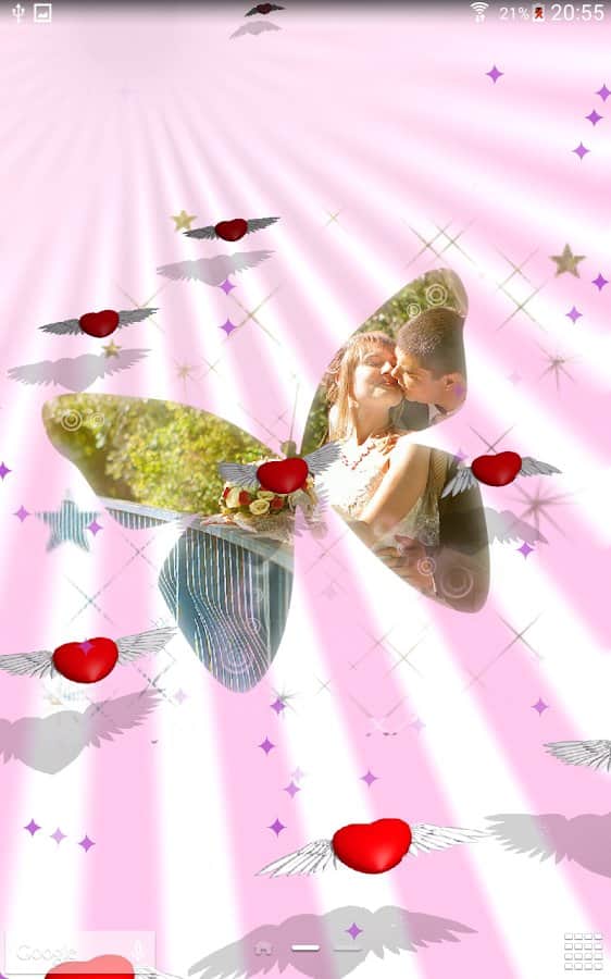 Sevgililer Günü Canlı Duvar Kağıdı – tüm aşıkların en romantik bayramı Sevgililer Günü yaklaşırken. Bu canlı duvar kağıtlarını telefonunuza veya tabletinize yükleyin ve şimdi uçuşan kalplerin ve kelebeklerin tadını çıkarın, kendinizi mutlu edin. Kanatlar ve kalpler ekranınızda uçacak, ayrıca aşağıdaki gibi ek özelliklerden yararlanabileceksiniz: