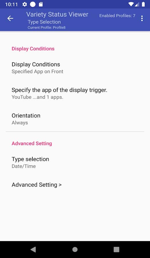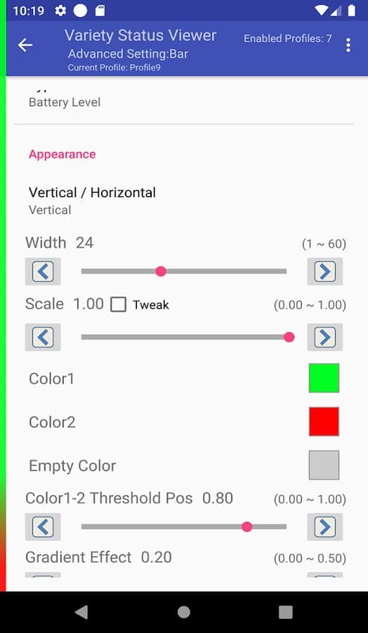 Çeşit Durum Görüntüleyici - Çeşit Durum Görüntüleyici uygulaması ile cihazınızın teknik bilgileri hakkında her zaman bilgi sahibi olacaksınız: tarih, saat, Wi-Fi ağ parametreleri, şarj seviyesi, uygulamaların çalışması vb. Renk şemalarını seçin, özel bir çubuk ve gösterge ile şarj seviyesini görün, formatı, boyutu ve yazı tipini değiştirin, yönlendirmeyi ayarlayın, kendi programınızı oluşturun, belirli bir uygulamanın ekranda görüntülenmesini ayarlayın, gece modunu zamanla etkinleştirin. Okuma modu etkinleştirildiğinde otomatik olarak mavi arka ışık açılır.