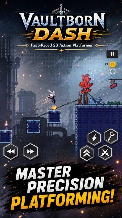 Vaultborn Dash — dinamik bir 2D platform oyunu, burada hız ve tepki her şeyi belirler! Tehlikeli zindanlardan geçin, tuzakları atlayın, paraları toplayın ve zorluklarla dolu seviyeleri geçin. Basit dokunmatik kontroller oyunu ulaşılabilir kılıyor, artan zorluk ise gerçekten heyecan verici. Karanlık zindanların atmosferi, hızlı temposu ve sürekli risk hissi sizi bir saniye bile sıkılmanıza izin vermeyecek.