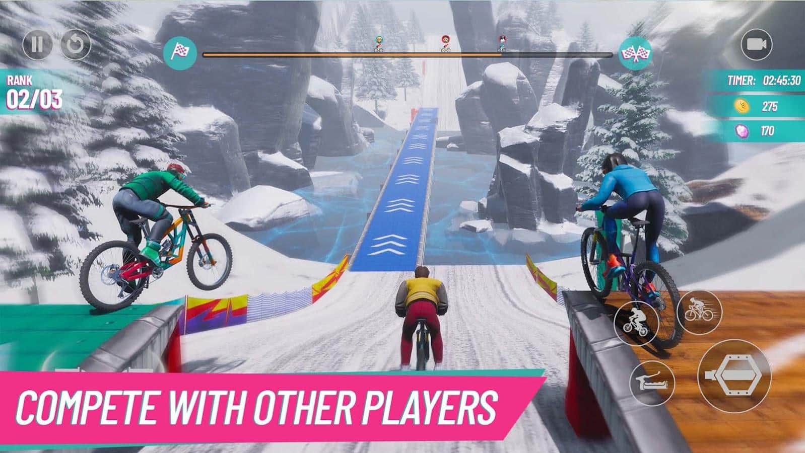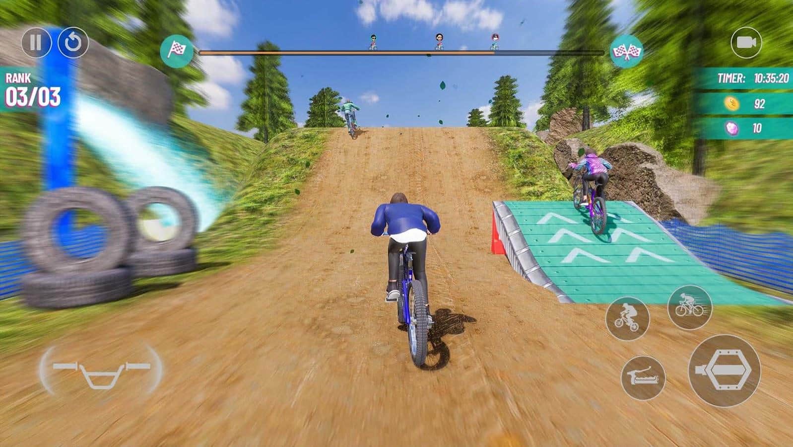 Bisiklet Aksiyonları 2: Arazi Bisikletleri - Bu bisiklet simülasyon oyunu, muhteşem 3D grafikler ve en deneyimli yarışçıları bile zorlayacak harika manzaralar ile bisiklet dünyasını keşfetmenizi sağlayacak. Farklı zorlu parkurlar ve engellerle, baş döndürücü aksiyonlar gerçekleştirmek için tüm bisiklet sürüş yeteneklerinizi kullanmanız gerekecek. Sizi etkileyen 50'den fazla seviye ve parkur. Kalbinizin daha hızlı atmasını sağlayın ve gerçek bir yarışçı olun.