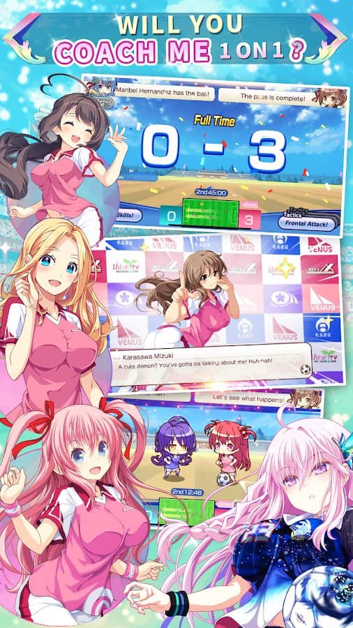 Venüs Onbir – Android için bir simülatör, burada kızlardan oluşan bir futbol takımını yöneteceksiniz. Bir futbol takımının antrenörü olun ve kızlarınızı eğitin, her kızın hikayesini öğrenin ve onlarla arkadaş olun. Bu oyunda, takımınıza katılmayı hayal eden 100'den fazla sevimli kız yer alacak. Diğer takımlara karşı çeşitli maçlara katılın ve takım için özel form oluşturun. Takımınızla birlikte galip gelin ve keyifli zaman geçirin. Oyun, oyuncuları kaliteli grafikler, çeşitli geliştirmeler ve 2 kontrol modu ile mutlu edecek.