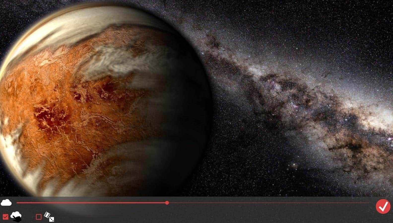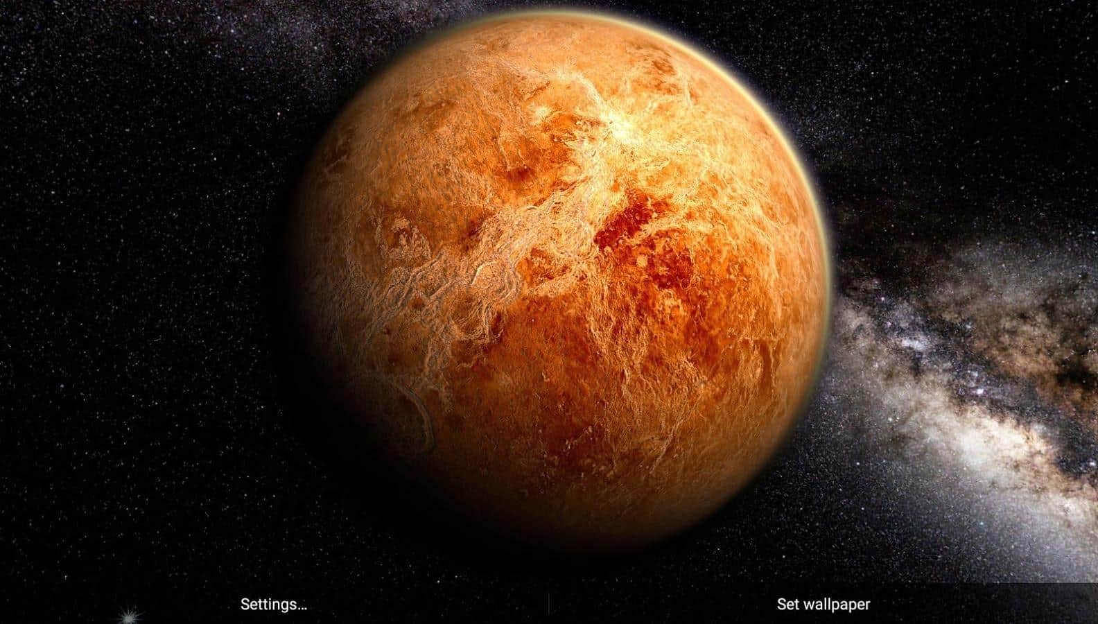 Venüs HD Gyro 3D XL - Cihazınızın ekranına tam bir evren getiren muhteşem canlı duvar kağıtları. Bunlarla, Venüs'ü her açıdan gözlemleyebilir ve bu gezegen hakkında bilgi edinebilirsiniz. Masaüstünü kaydırdığınızda, gezegeni de döndüreceksiniz. Eğer bu özelliği istemiyorsanız, ayarlardan kapatabilirsiniz. Ayrıca, beş farklı kamera modundan birini seçebilir veya onu manuel olarak bile hareket ettirebilirsiniz. Güneş ışığının gezegene düşeceği açıyı da ayarlayabilirsiniz. Tüm bunlar, mükemmel grafikler ve harika üretim ile birleştiğinde bu uygulamayı en iyi uygulamalardan biri haline getiriyor.