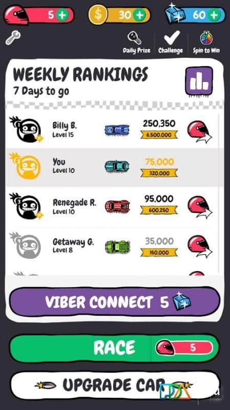 Viber Kaba Sürücü – şehri büyük hızlarla dolaşan ve karşıdan gelen araçları patlatan çılgın bir sürücüyü yönetin. Sonsuz araç akışında zigzag yapın ve çeşitli engellerden kaçının. Karşıdan gelen araçları ve rakiplerinizi geçin ve onları toplar ve roketlerle patlatın. Yol boyunca altın paraları ve kristalleri toplamayı unutmayın, bunlar yeni araçlar ve güçlendirmeler satın almak için işinize yarayacak. Nitro hızlandırıcısını kullanın ve parkurda kendi rekorunuzu belirleyin. Oyunun özellikleri arasında orijinal grafikler, üstten görünüm ve basit kontrol bulunmaktadır.