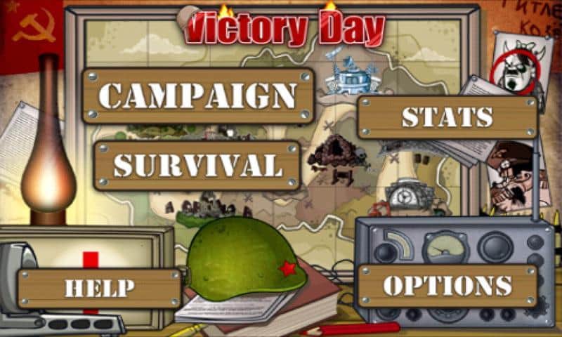 Zafer Günü - zafer günü. Oyun zamanı - İkinci Dünya Savaşı. Kahramanınız ya Amerikan askeri ya da Rus askeri. Göreviniz, tüm Alman birliklerini ve komutanlarını yok etmek. Silah ve el bombası envanteriniz var, ayrıca zaman zaman ilaç ve mühimmat şeklinde paraşütle silah indirmeleri yapılacak. Neyse ki, hepsini yenip karargaha dönmelisiniz, burada sizi buraya gönderenler hakkında her şeyi söyleyin! Ve öfkenizin sınırı olmadığı için - savaş ruhu daha da güçlü... ya da bu alkol kokusu. Her neyse, önemli olan savaşçı ruhudur! Ve bu, şunlar için gerekecek: