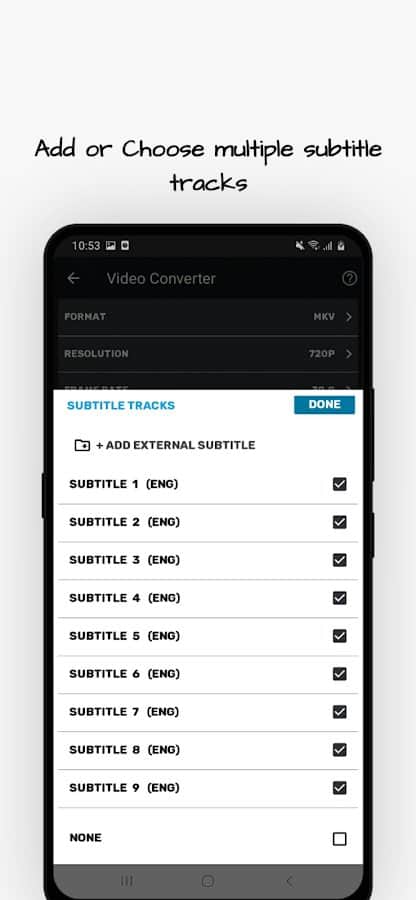 Video Dönüştürücü uygulaması, MP4, MKV, AVI, MPEG, 3GP, MTS, MOV, MPG, WMV, M4V, VOB, FLV formatlarındaki videoları video ve ses dosyalarına dönüştürmenizi ve sıkıştırmanızı sağlar.